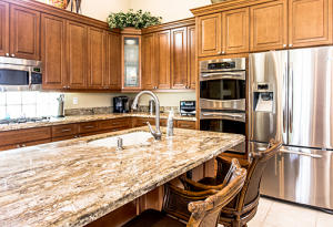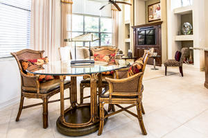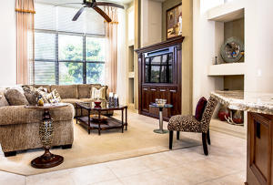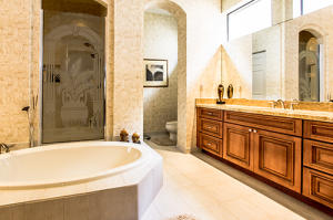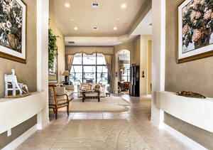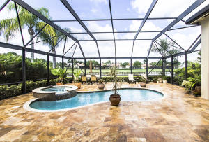 This exceptional home has it all: a fabulous water and golf view, wonderful layout, and a tremendous level of upgrades in this 3BR/3BA+Den. Gourmet kitchen with granite and stainless top-of-the-line appliances, refaced kitchen cabinetry, renovated master bathroom with granite, 2014-renovated pool and travertine patio (entire deck redone with drains and fountains), custom built-ins, 2006-installed fully screened enclosure, accordian hurricane shutters, custom office built-in. This home is light, bright, upgraded, has an open layout and soaring ceilings. Other upgrades and options include stunning wood floors in master suite, designer window treatments, light fixtures and more. Move-in perfect and stunning. No expense has been spared in this masterpiece.