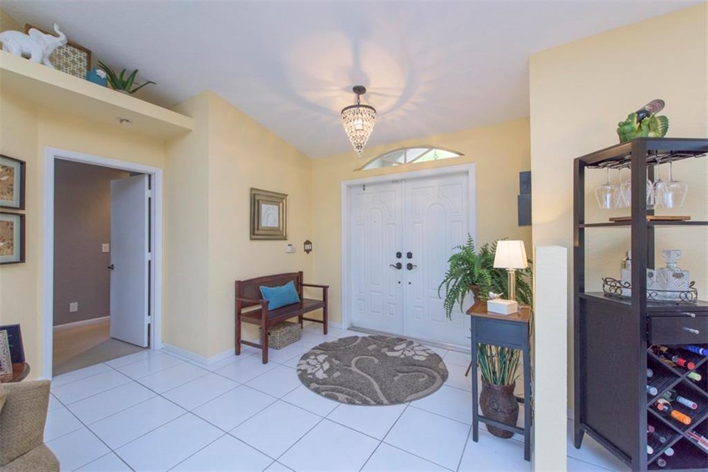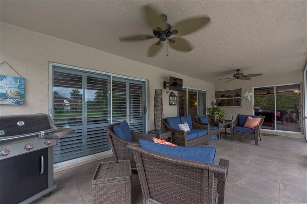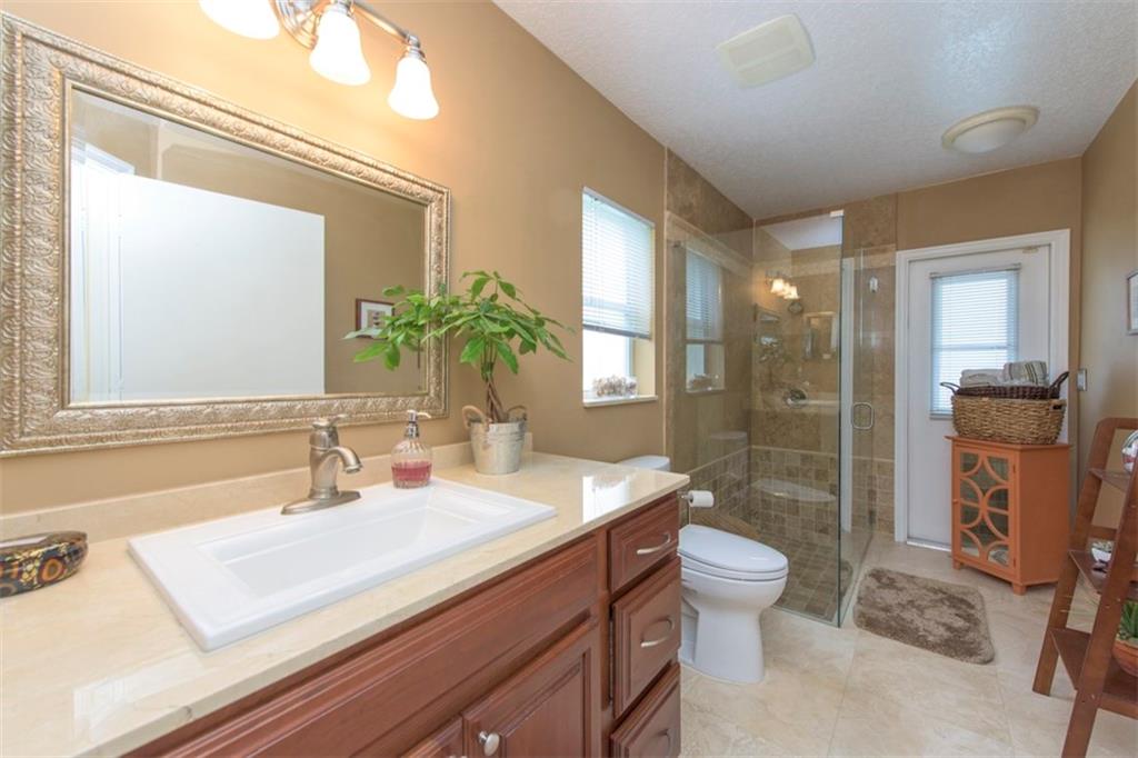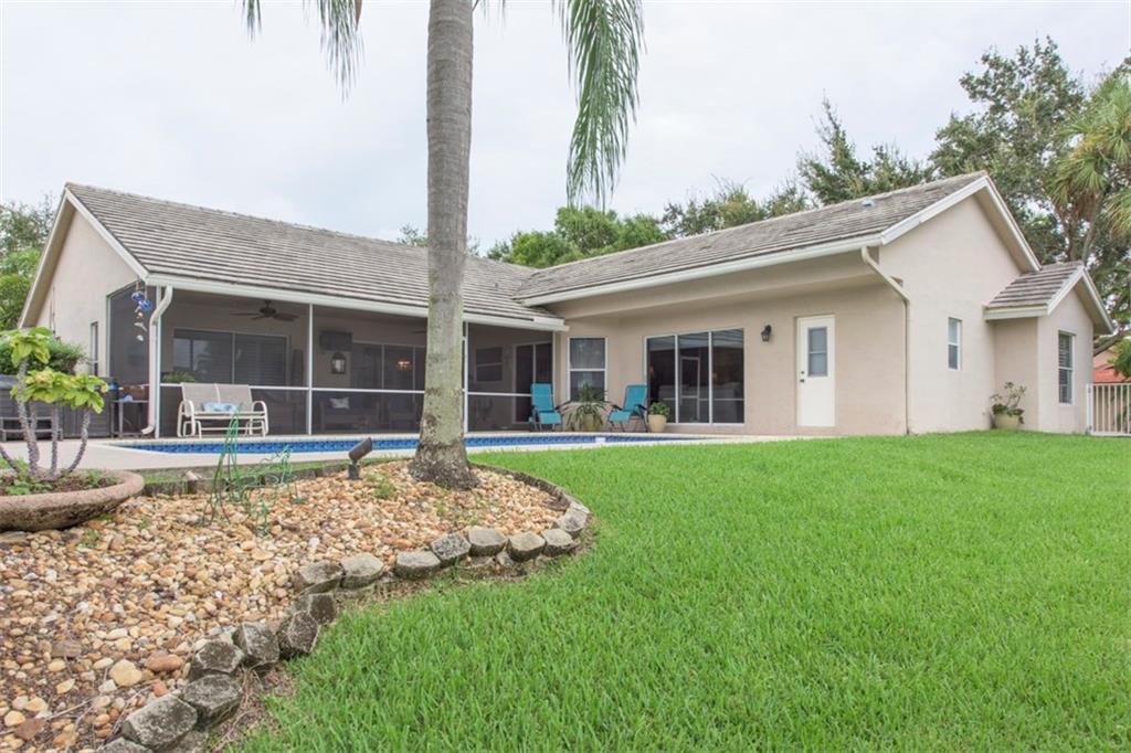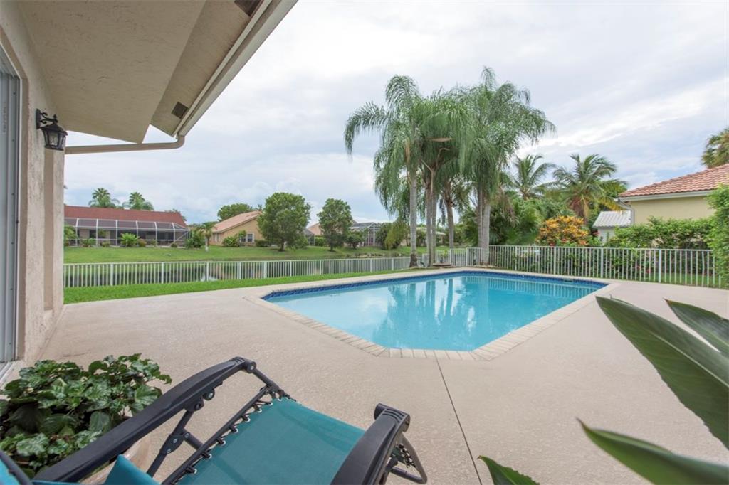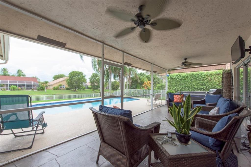 Premium waterfront, cul-de-sac location & beautiful elevation, circular drive & stunning double door entry initiate this updated home's appeal. Outstanding features include: updated kitchen w/raised panel, wood cabinets, granite counters & backsplash & stainless steel appliances; all 3 bathrooms updated w/frameless shower doors, new cabinets, fixtures, etc. (MBA incl. free-standing tub!); plantation shutters throughout; & expansive patio w/open pool, screened loggia & fenced yard. Full house generator!