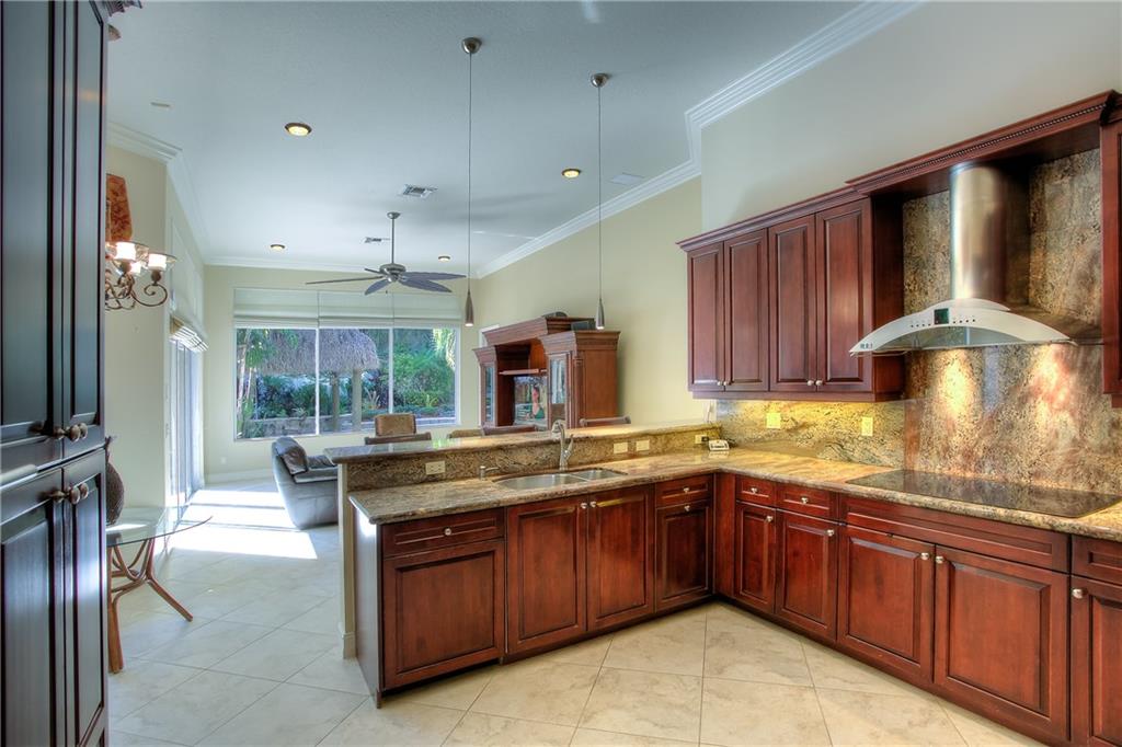 FABULOUS SOUGHT AFTER VERSAILLES MODEL WITH AMAZING OUTDOOR ENTERTAINING AREA*HUGE PAVER POOL DECK WITH TIKI HUT*SPARKLING HEATED POOL AND SPA*4 LARGE BEDROOMS 3 1/2 BATHS*TRIPLE SPLIT PLAN W LIBRARY/OFFICE*GOURMETS WILL LOVE THIS KITCHEN WITH GRANITE COUNTERS AND WOOD CABINETRY*NEUTRAL DECOR*SOME ACCORDION SHUTTERS*CIRCULAR DRIVEWAY*FRESHLY PAINTED EXTERIOR*SUPER PRIVATE LOCATION*DON'T MISS THIS ONE!!