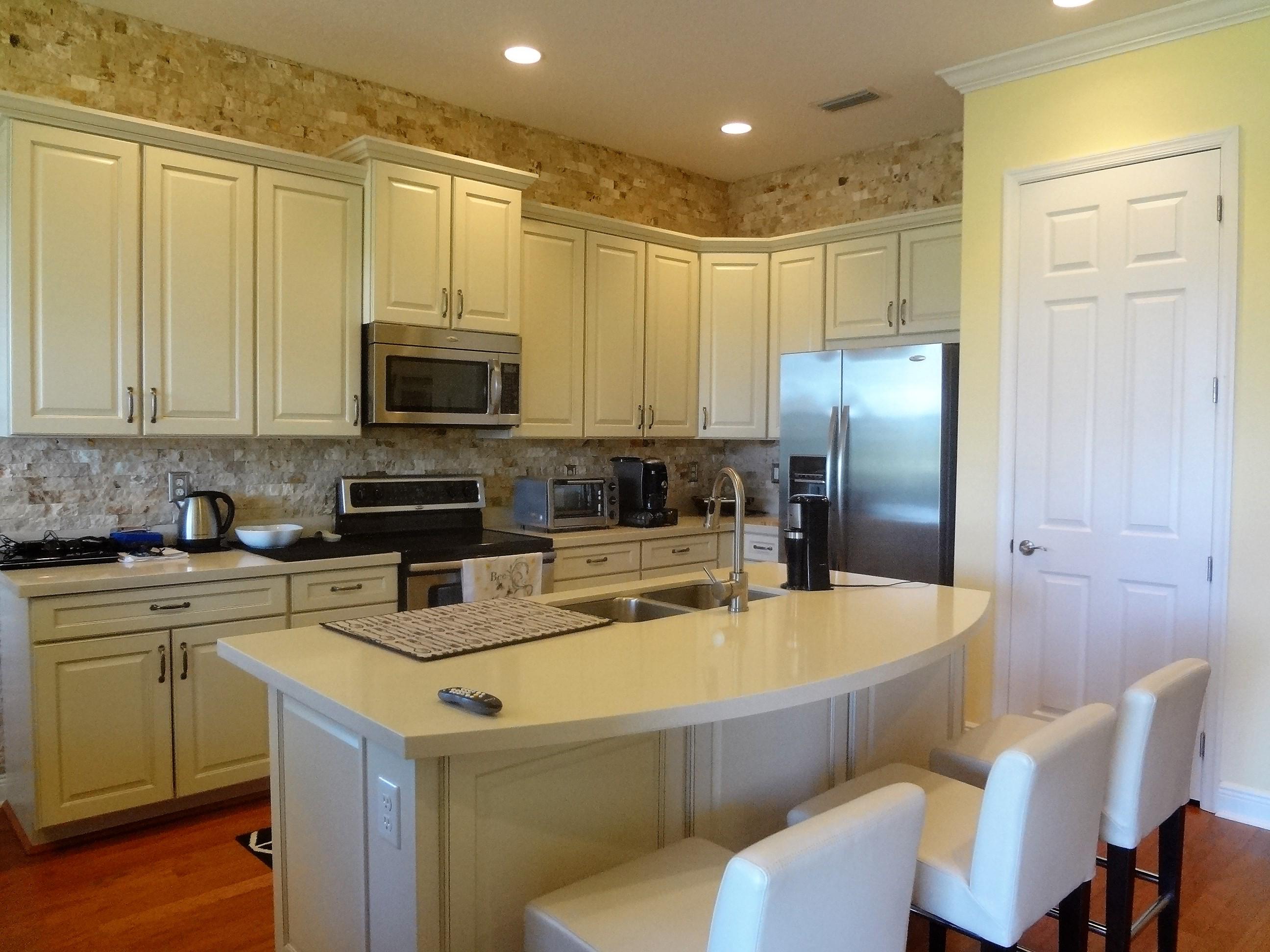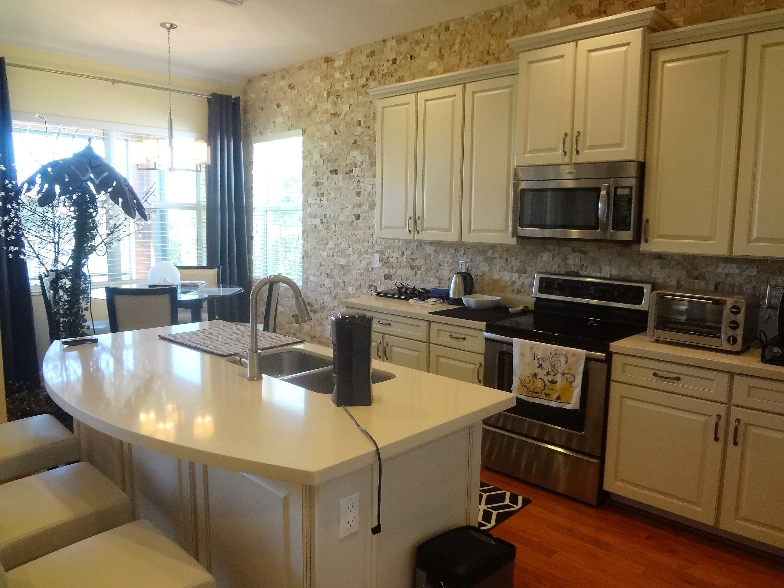 Owner motivated: All reasonable offers considered. Fabulously upgraded and appointed waterfront property in the resort style community of PortoSol, the detail of which must be viewed to be fully appreciated. Three bedrooms, (One currently utilized as a den), two full bathrooms plus an oversized powder room, two car garage plus driveway parking. The living areas have quality solid hardwood flooring. The kitchen features premium ivory solid wood cabinets, quartz counter tops, 'island' seating, an inbuilt pantry, and decorative stone back walling which is also featured on the underside of the living area archway. Off the kitchen is a 'bay' dining area with picturesque garden and lake views also enjoyed through the grand bay window (Contin).