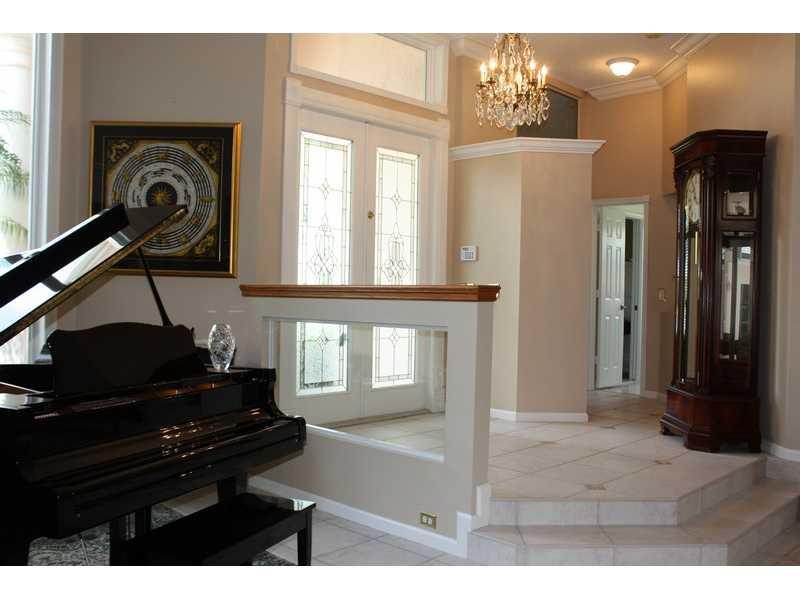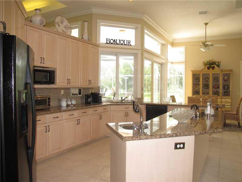 Spectacular lakefront & cul-de-sac estate home. Water views from every room. Over 260 feet of water & overlooks the amenity island of Meadow Run! Newer tile roof (2008), 2 newer a/c units, new impact glass windows & sliding doors & crown moldings! Beauti ful tile floors through out living areas. Chair rails & decorative moldings. Laminate floors in 2 bedrooms. Closet built-ins! Double wall ovens, granite counter tops, center island & vegetable sink! Wall unit in family room! Spacious master w/sitting area