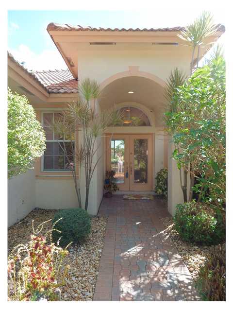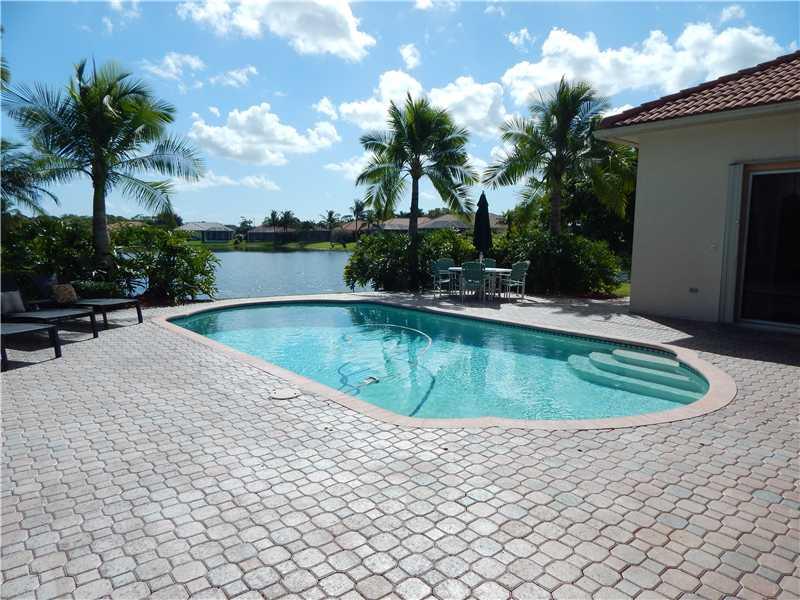 Come take a look at these amazing views ... in the gated community of Carriage Point. 4 bedroom + DEN / 3 bath triple split home and 3 car garage, with a very lush tropical pool area overlooking the lake. Spacious open floor plan features wood cabinets, g ranite, extended family room, child pool fence, hurricane shutters. Come see and enjoy Florida Living!!