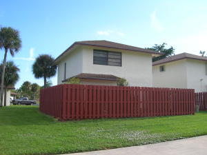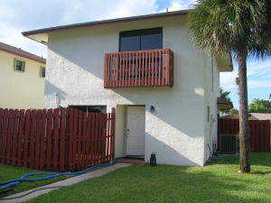 Rare opportunity to own a 2 bedroom, 2.5 bath, 2 story single family home. Two bedrooms on 2nd floor set up like two master bedrooms, each with private baths. 2 fence enclosed patios, one off kitchen in front, the other off living room. 1/2 bath downstairs with full sized washer/dryer. New front door, textured ceilings. Community offers central mail pickup at clubhouse, large heated community pool, 2 lighted Har-Tru tennis courts. Easy access to schools, shopping, I-95 or turnpike. Own for less than you can rent!
