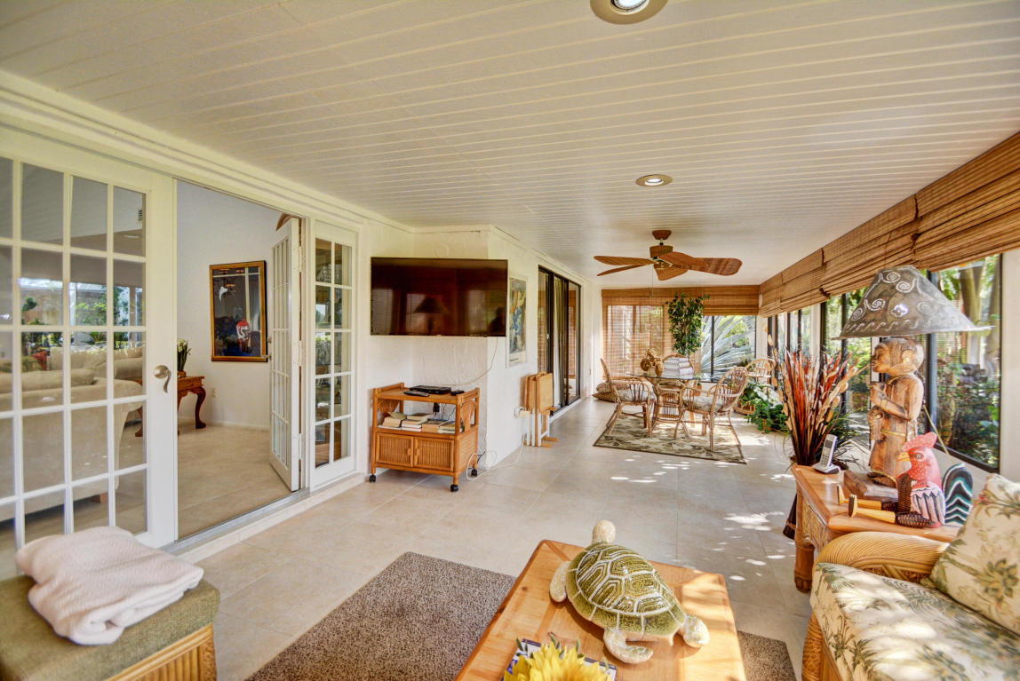 Open, bright and charming 2 bedroom plus den (could be 3rd bdrm/wall was taken down)villa in Horizons section of Boca Lago...an all age, pet friendly (1 pet up to 30 lbs.) section. Home features large 18 inch tiles in extended living area, extra large and enclosed air conditioned Florida room overlooking magnificent lake and golf views, newer a/c and hot water heater, newer refrigerator, beautiful open atrium and new bathroom vanities. Can walk across the street to community clubhouse with heated community pool. Country Club membership available but not mandatory.