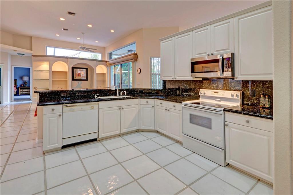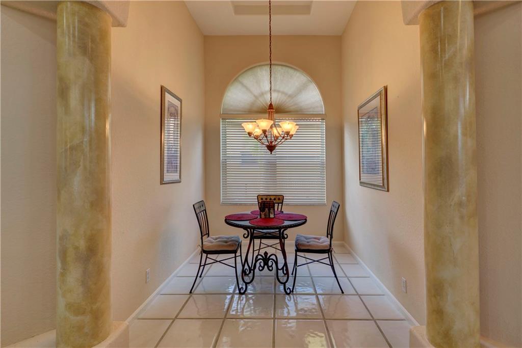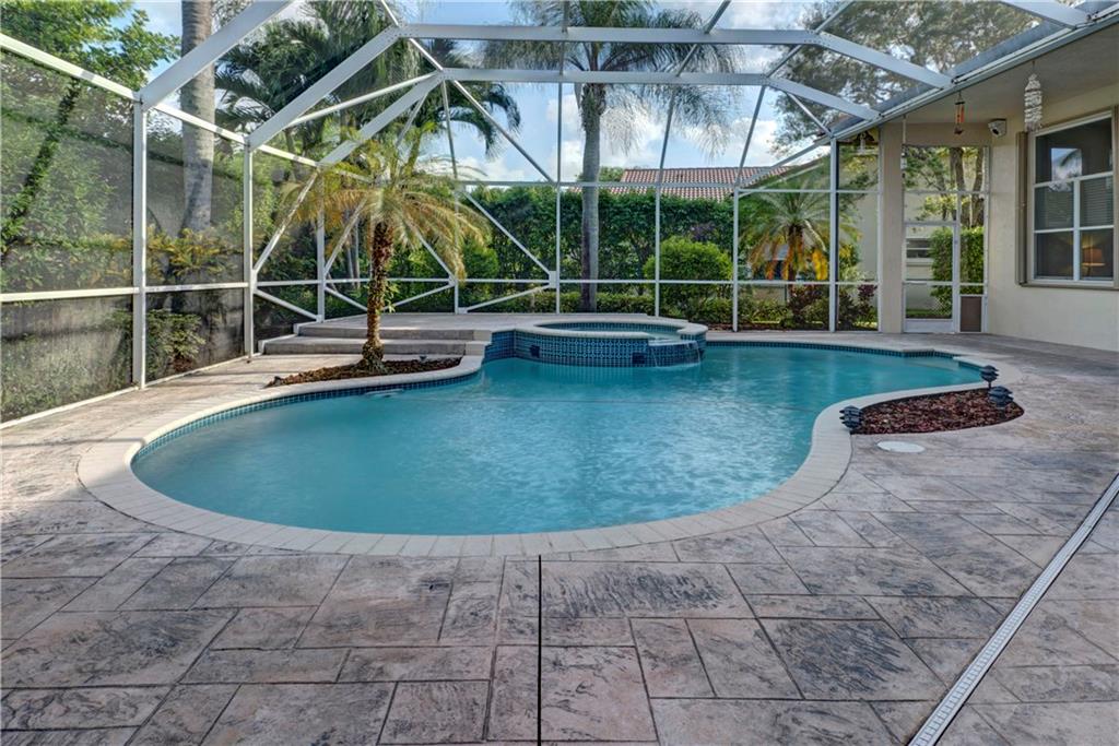 This lovely home features an open layout with tiered trey ceilings. Architectural columns give your breakfast nook a cozy feel. The kitchen features all wood cabinets with granite counters. Master suite features walk in closets and jetted tub. The sparkling screened in heated pool with Jacuzzi has a gentle salt conditioning system and outdoor shower. Awesome pool patio area, great for entertaining! Even a doggy door leading to the fenced yard for your fur babies convenience. Newer S tile roof and A/C.