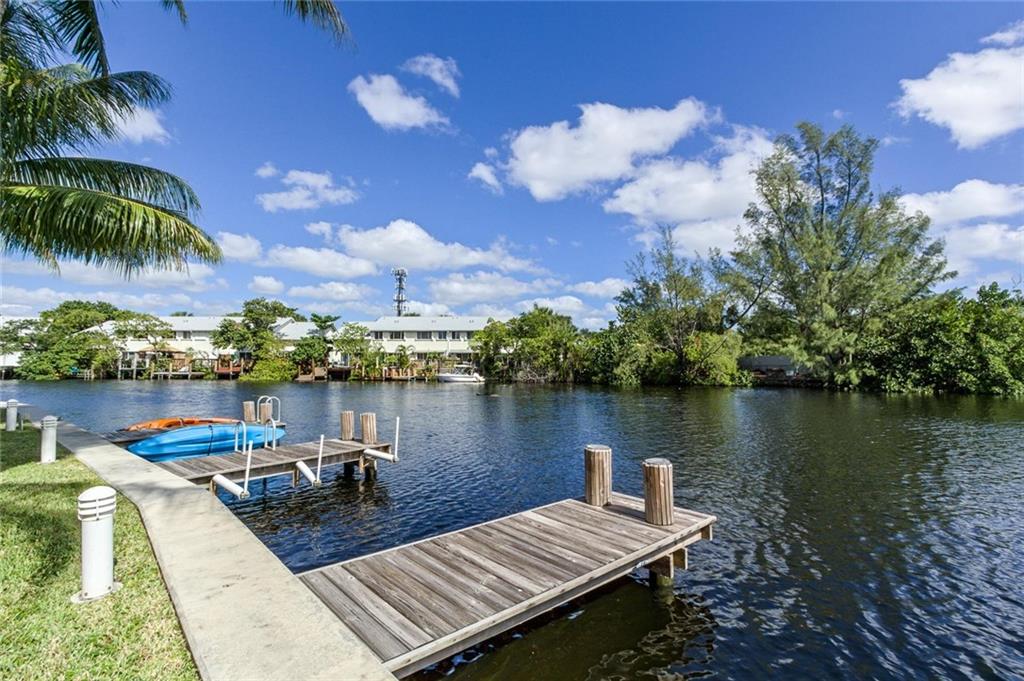 Uber sophisticated modern waterfront townhome! Nothing to do here, all upgraded -- just relax as you sit on your patio and watch the river go by, or go out on your boat from your own dock. Open beautiful kitchen with SS Viking appliances, handsome walnut bar/buffet, thermal impact windows and plantation shutters. Master bath shower has thermostatic valves & dual sinks. Master bedroom with vaulted ceiling, walk in closet, & balcony overlooking the water. Can rent out 3x/yr with 30 day minimum stay.