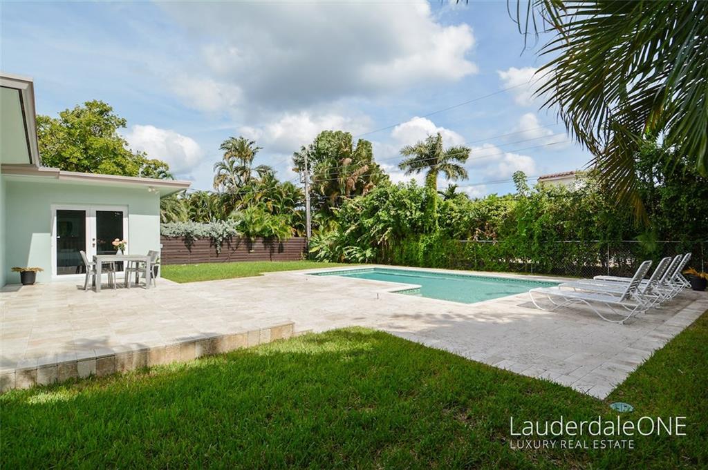 A Mid-Century gem. Enjoy living in the 24/7 security patrolled Seven Isles neighborhood of the Las Olas Isles. Seven Isles is an enclave of private streets and mature growth landscaping, imparting a true "neighborhood" feeling. One of the few dry lots located amongst multi-million dollar water front homes. This home sits on a large lot with a heated pool. Spacious rooms with a separate entrance to the 3rd bedroom. Minutes to the beach, dining, boutiques and airport.
