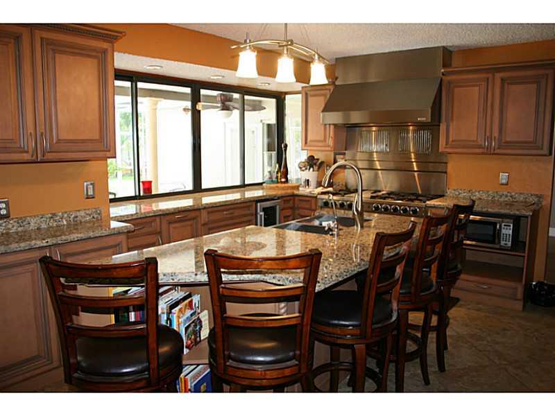 3 / 2.5 pool home on 11,000 sq ft corner lot. Barrel tile roof , screened pool, stamped circular driveway. Over 200 various palm trees & butterfly garden. Kitchen fully update with stainless appliances, including two stainless refrigerators, wine cooler, 6 burner natural gas stove with griddle and double ovens with industrial Five Star hood. Screened pool recently resurfaced with diamond brite and illuminated with fiber optic lighting. Porcelain tiles,A media room equipped with Infinity sound system.