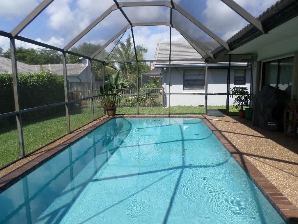 NEAT AND CLEAN 4/2 1/2 LOCATED IN EASTRIDGE/CROSSINGS VILLAGE MINUTES FROM CORAL SPRINGS HIGH AND MAJOR ROADS. GREAT LAYOUT WITH LARGE FAMILY ROOM FEATURING VAULTED CEILINGS COVERED WITH WOOD, A FIREPLACE FRAMED BY A LOVELY STONE WALL. KITCHEN AND EAT IN AREA WITH PATIO/POOL VIEW. VERY LARGE LIVING ROOM CARPETED WITH VAULTED CEILINGS. MASTER BEDROOM FEATURES LAMINATE FLOORING WITH TWO CLOSET AND POOL VIEW. SCREENED PATIO SOLAR HEATED POOL AND WATER HEATER. PRICED TO SELL