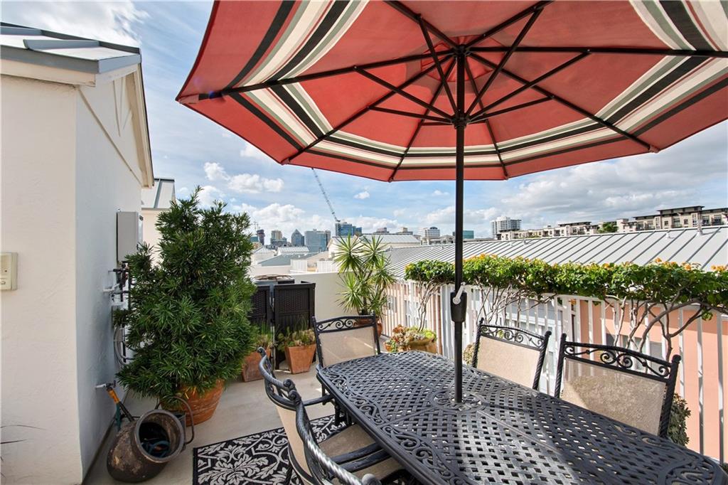 This Exceptional TH needs absolutely nothing. Beautifully appointed & perfectly maintained it simply awaits its new owner. Gated Courtyard leads into an office/3rd bedroom. 2nd level Living Room w/Formal Dining & Kitchen. 3rd Level features spacious Master & Guest Bedroom. Inviting Rooftop Patio comes fully furnished perfect for entertaining and a little R&R. Interior features include High Ceilings, GAS Cooking, Luminette Window Treatments, Full-size W/D, Patio level Bar w/Beverage Cntr. 2 Car Garage.