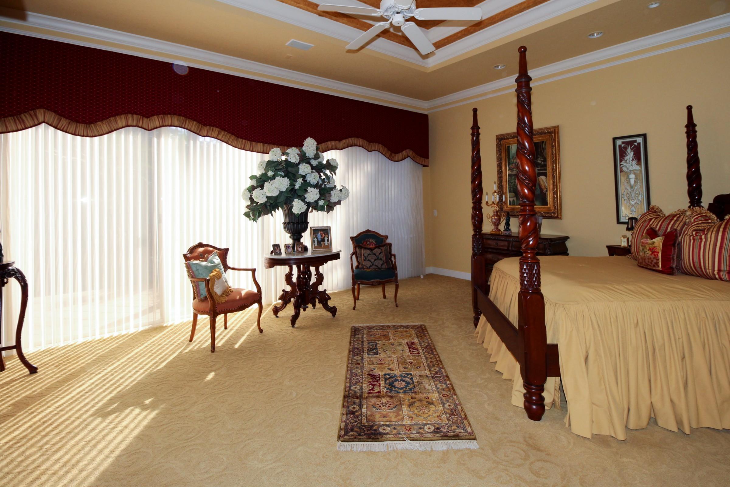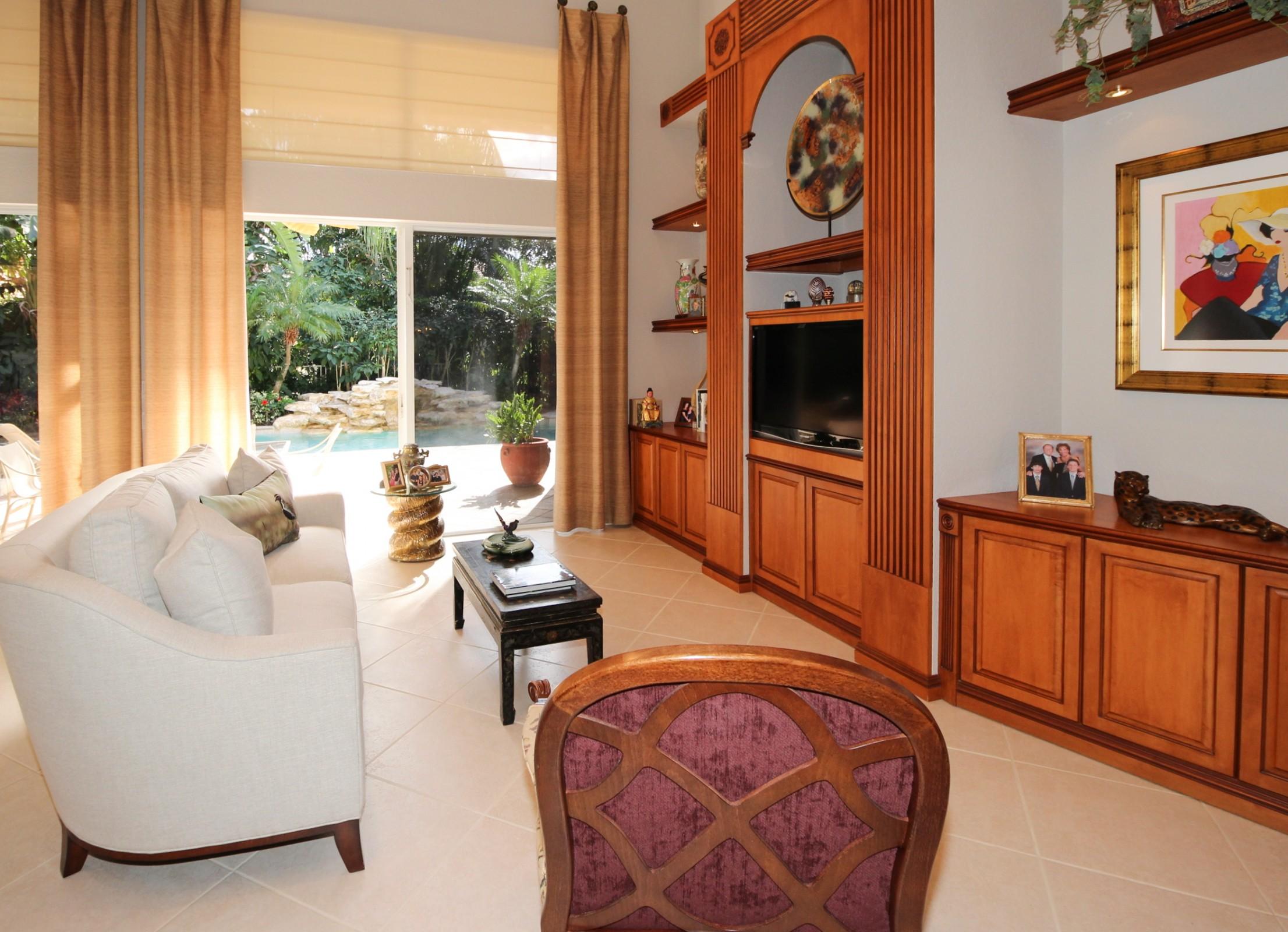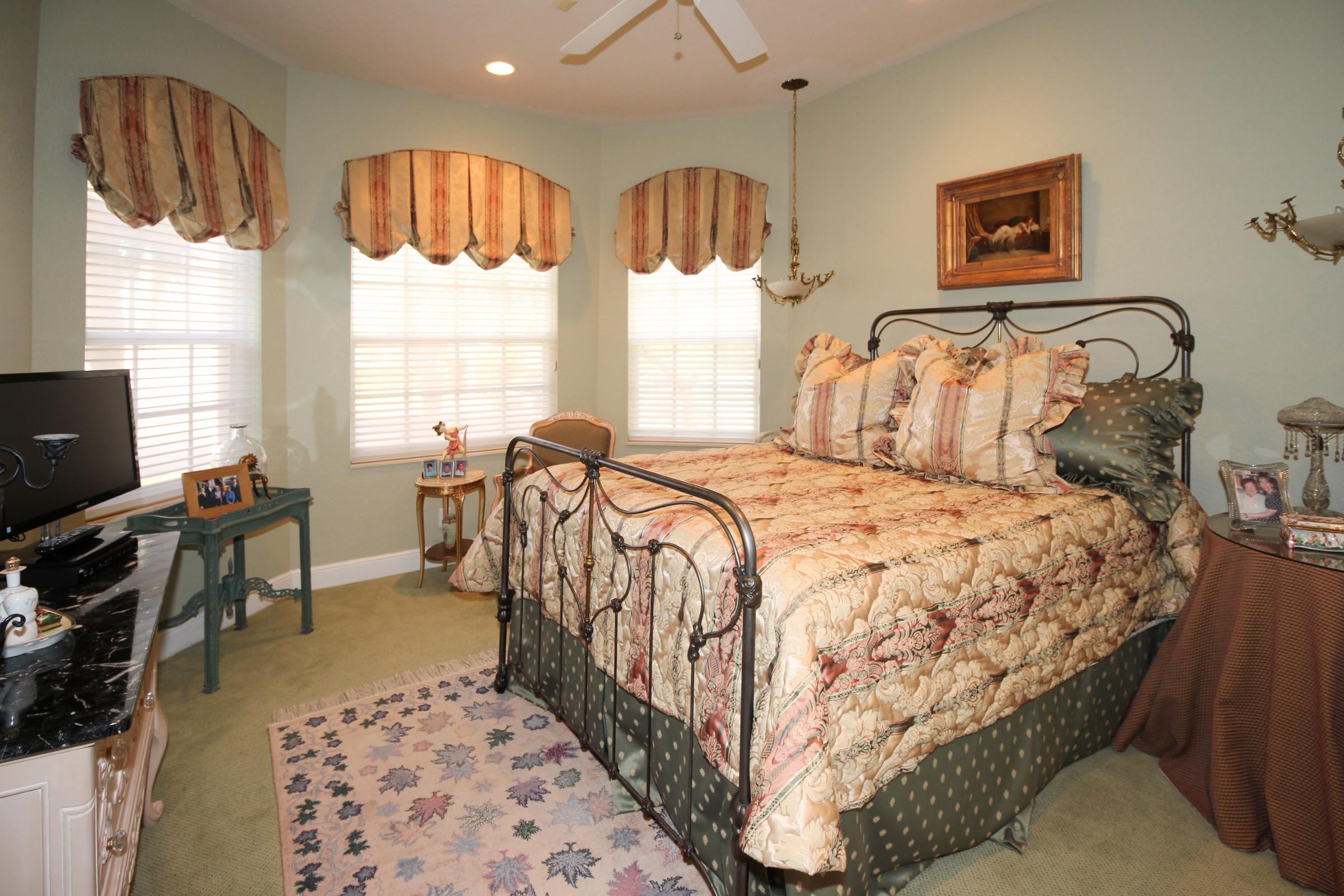 Spectacular one story custom home on oversized private lot with volume ceilings throughout home.Fully renovated Master Bathroom with all wood cabinetry, mystery white marble counter tops, polished marble floors and a jacuzzi roman tub.The living room has Palladium windows approx. 12 ft. high and a wet bar with granite tops with custom smoke glass shelves.Custom all wood flooring with plantation wood window shutters in den.Tile throughout home and carpet in bedrooms. This home has JBL ceiling speakers throughout home and on outside portico.The kitchen has granite countertops and tumble stone on breakfast bar island. The backyard is oversized with pool and new pool heater. Extraordinary water feature with natural rock waterfall.This home is exquisitely maintained.
