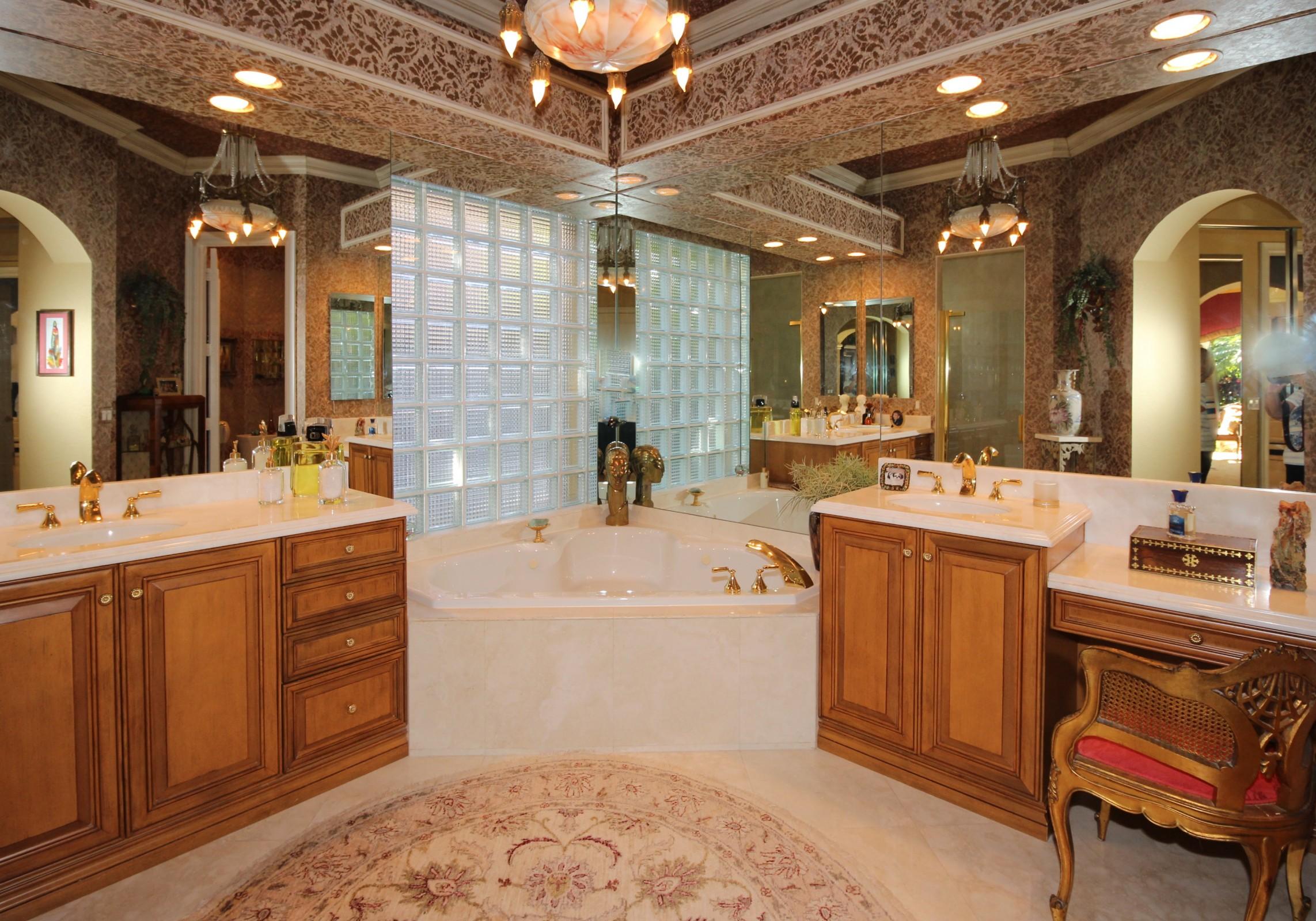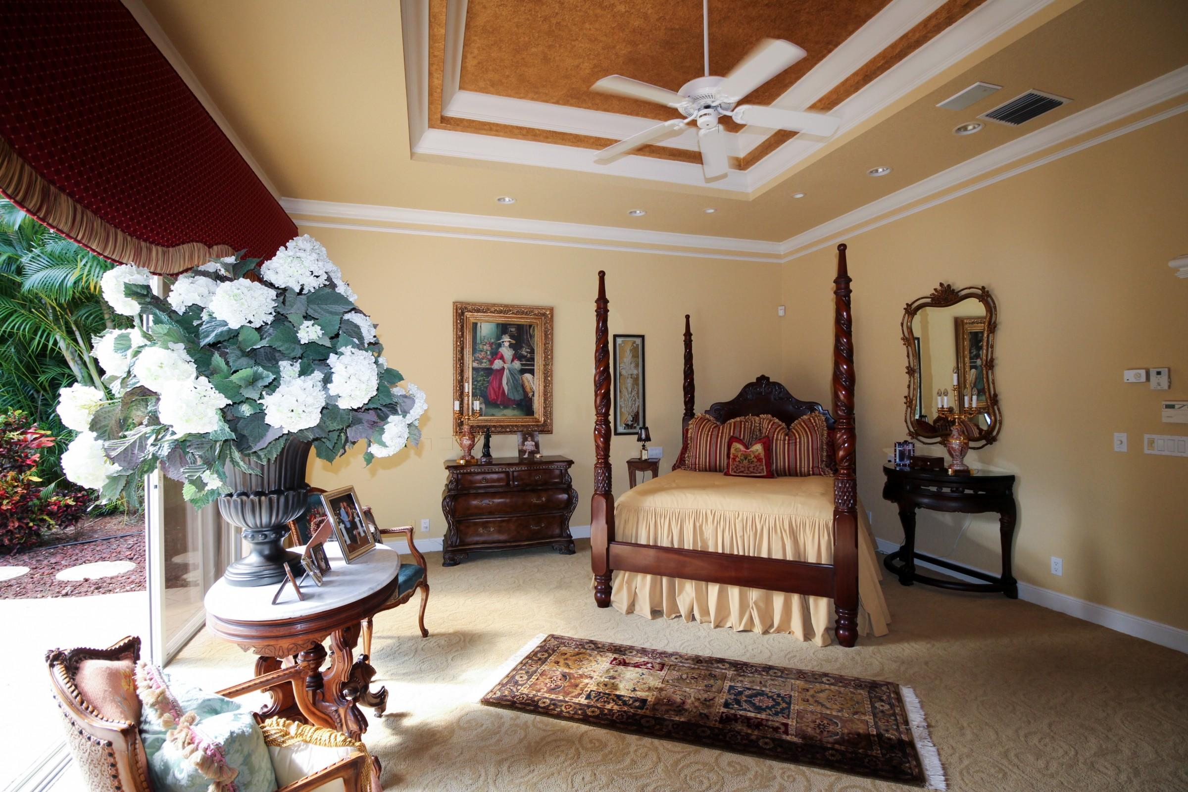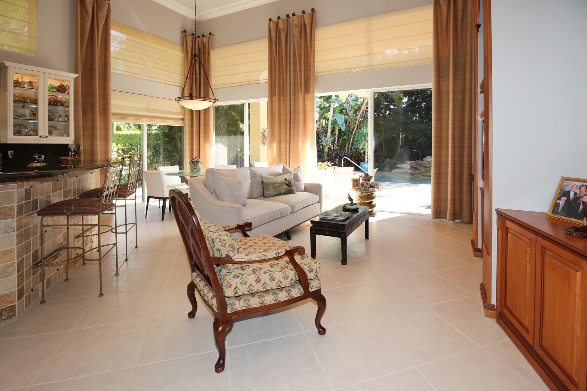 Spectacular one story custom home on oversized private lot with volume ceilings throughout home.Fully renovated Master Bathroom with all wood cabinetry, mystery white marble counter tops, polished marble floors and a jacuzzi roman tub.The living room has Palladium windows approx. 12 ft. high and a wet bar with granite tops with custom smoke glass shelves.Custom all wood flooring with plantation wood window shutters in den.Tile throughout home and carpet in bedrooms. This home has JBL ceiling speakers throughout home and on outside portico.The kitchen has granite countertops and tumble stone on breakfast bar island. The backyard is oversized with pool and new pool heater. Extraordinary water feature with natural rock waterfall.This home is exquisitely maintained.