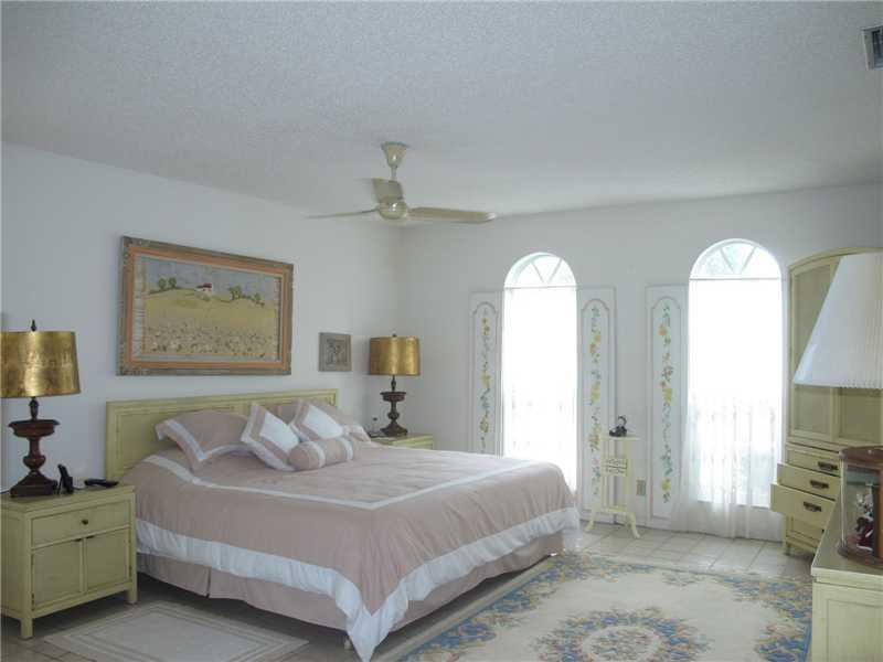 Prime golf course location with beautiful views! .43 acre estate with huge Fenced back and side yards! Split bedroom floor plan featuring new impact windows throughout plus new pedestrian utility door and cabana door (sliding doors are original). Roof re placed in 2000.Large utility room with newer washer and dryer. Circular front driveway and side entry garage that includes closet. No HOA fees!!! Tile floors in living areas and master bedroom. Covered back patio! Front court yard with wrought iron gates.