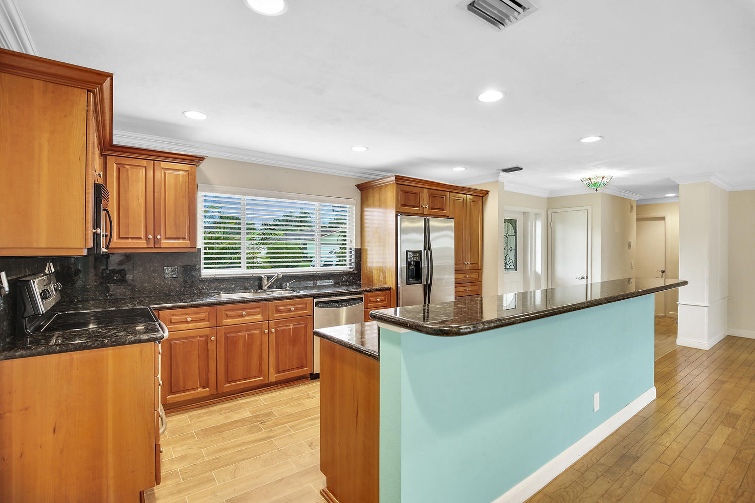 Great opportunity, exceptional value! East Boca Raton charmer in highly desirable Addison Mizner school district. Close to I-95, beaches & downtown! Single story 3 bed, 2 bath pool home on very quiet, low traffic street. Open floor plan features updated granite Island kitchen with breakfast bar open to the family room and out to patio, pool and yard. Huge open sliding door from family room to patio with triple' span! Ceramic and wood flooring. Private master suite, split plan. Quality CBS construction with tile roof and full set of hurricane shutters. Pool is fully screened and includes child fence between house and pool.