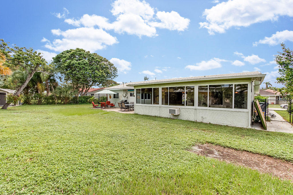 Fantastic 3 bedroom Boca Square home on one of the quietest streets in the area. Huge Pie shaped lot with plenty of space for a pool and guest house. Hurricane Impact windows. Gorgeous wood look porcelain floors. Large updated kitchen with granite counter tops. Both bathrooms feature rain heads and decorator tiles. Whirlpool tub. Flat ceilings and crown molding. Huge sunny Florida room overlooking the yard. Plantation shutters throughout. New a/c system. Incredible east location. You can ride your bike to the beach and downtown (Mizner Park area). Our A-rated schools are close at hand (Addison Miner is a bike ride away). Boca Raton High School is nationally ranked academically. Do not hesitate. Please call today for a private showing.