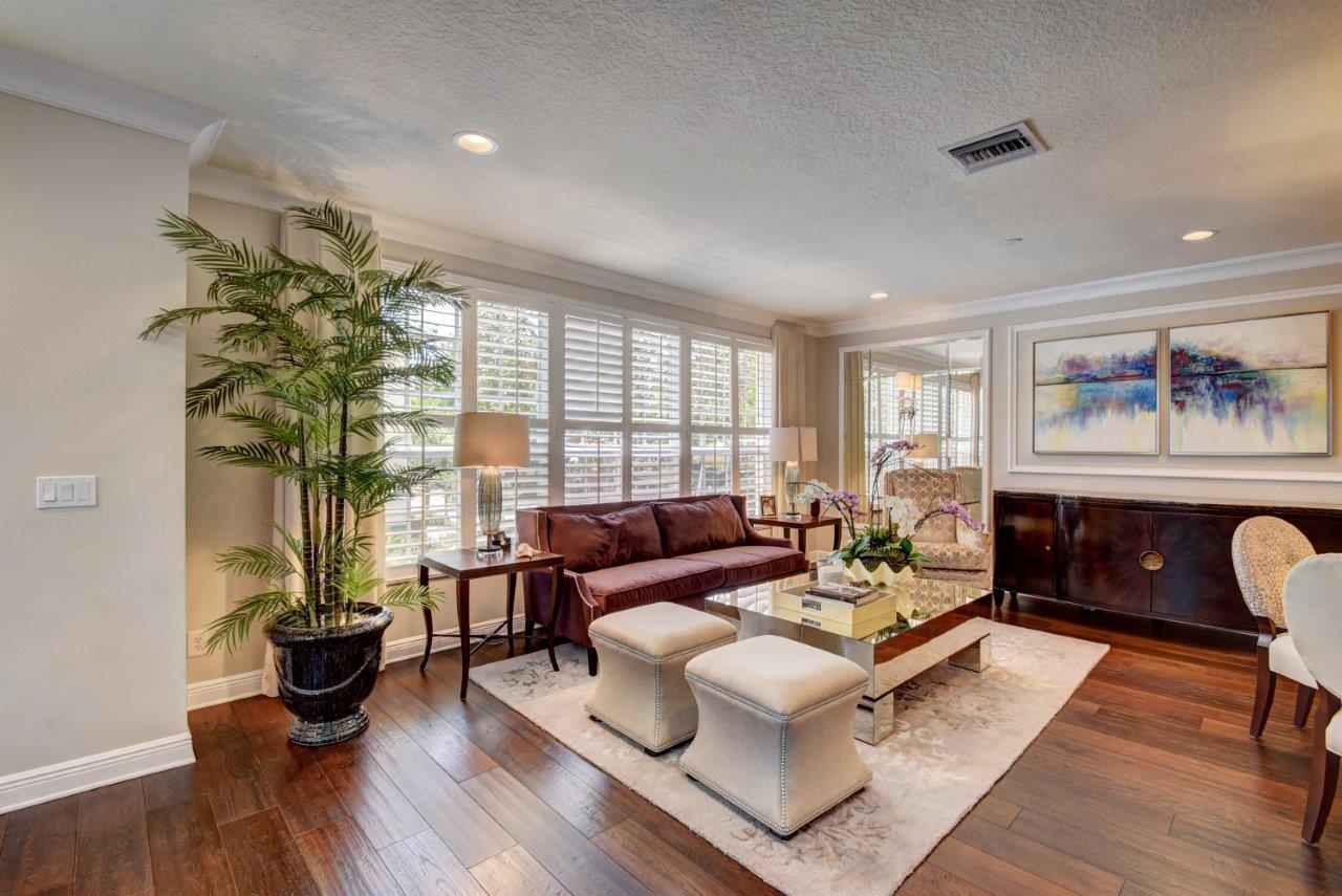 This Gorgeous custom designed and completely renovated AVENTINO model offers all the upgrades imaginable plus a PRIME location on the center courtyard!! This desirable corner unit features south exposure which allows for light filled rooms, and a very open & airy feeling. High end finishes throughout w/ wood floors in most rooms, California shutters, closets with built ins, and crown molding. The open Dining and Living Room offer a custom built-in bar with GE PROFILE wine refrigerator. A stunning modern Kitchen features a new island with granite countertops with waterfall edge, and all stainless steel appliances including a gas cooktop and double oven and newer refrigerator freezer. The three stop elevator features custom wood paneling and granite floor. The ultra luxurious Master