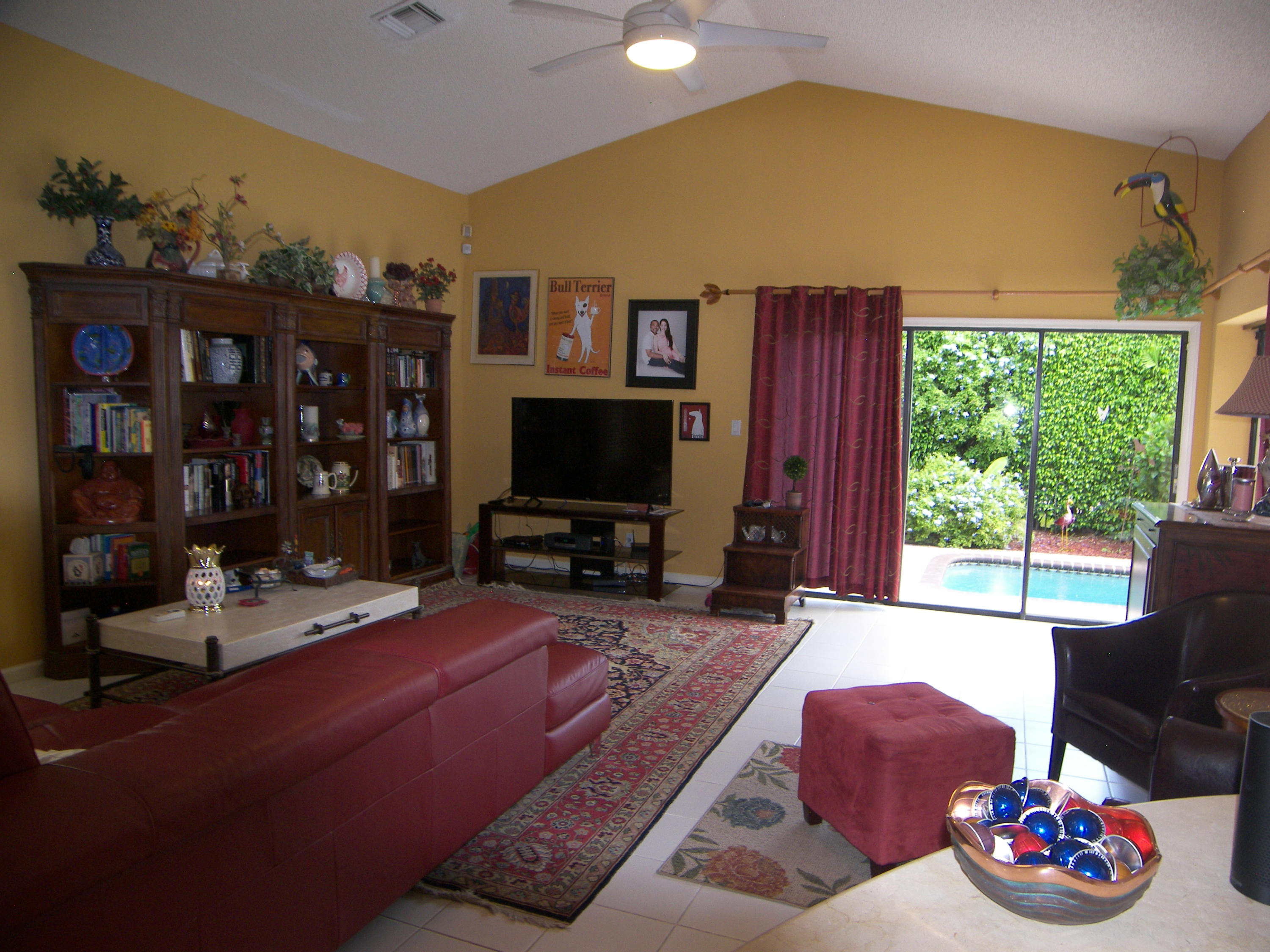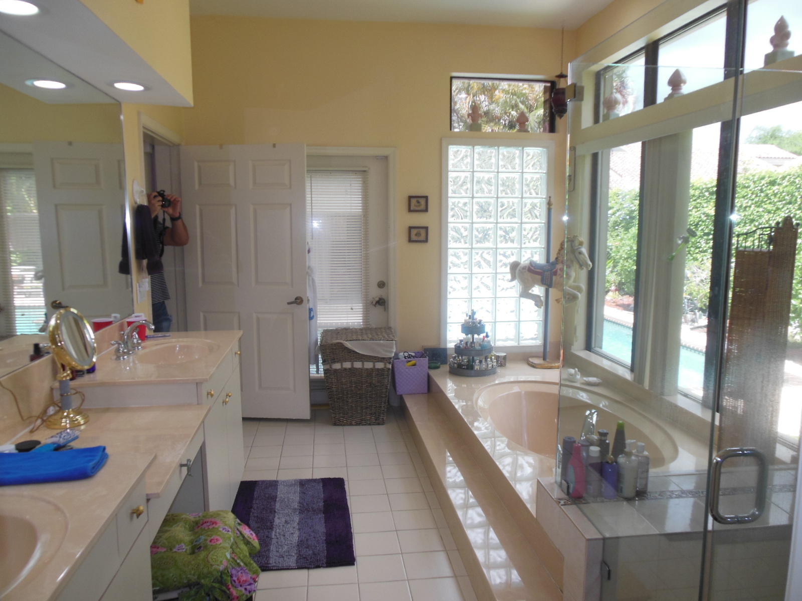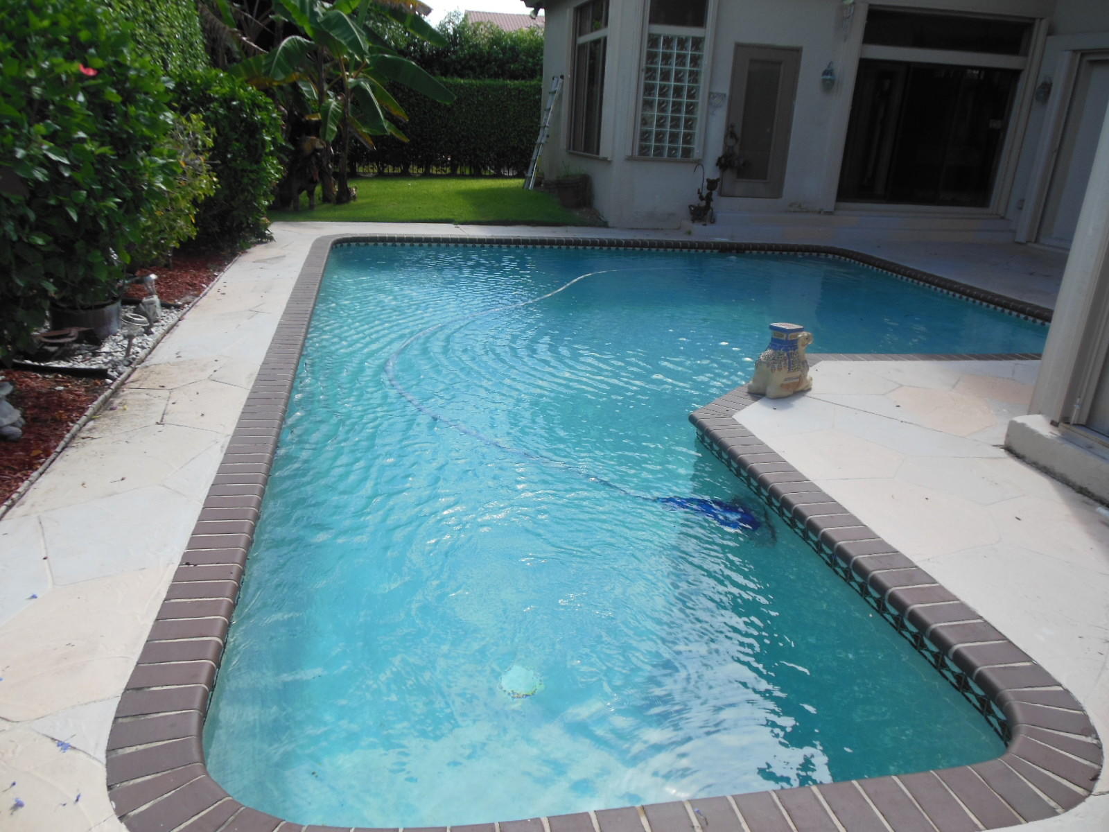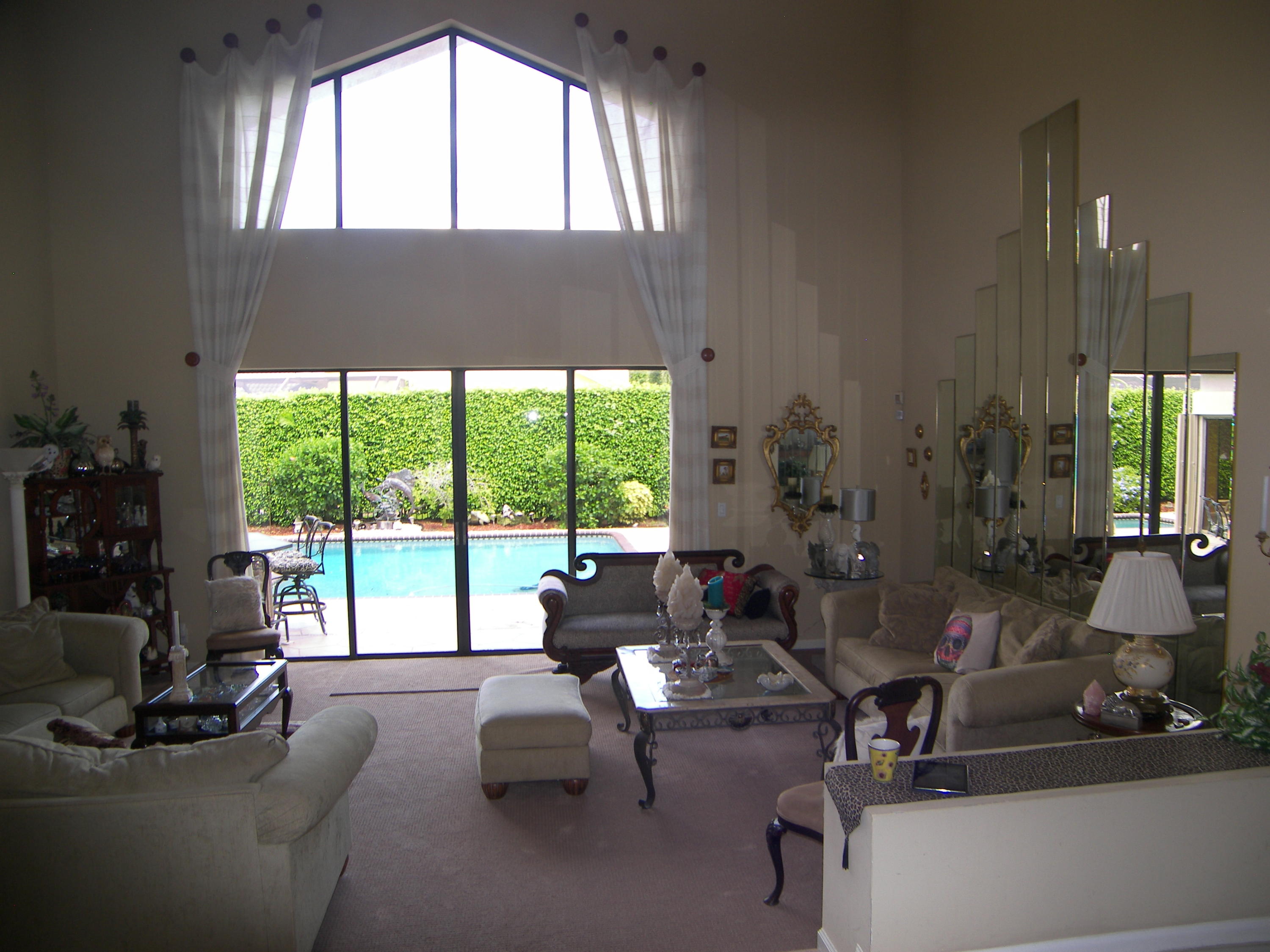 Ideal one story 4/3.5 family floor-plan. Volume ceilings w/soaring high glass windows, updated gourmet kitchen (2008) cabinets & granite counters, breakfast nook & family room all overlooking pool. True Formal Dining Room w/beveled glass French doors, wood laminate floors. High volume foyer from front Portico view to grand sized living room. Master suite boast volume ceilings, high glass windows, laminate wood floors, two walk-in closets. Master bath w/private water closet, updated shower, cabana door to pool. 2nd bedroom is en-suite w/shower bath. Cabana hall bath. Flat tile roof 2008, 2 zone A/C 2016 & 2017. Battery based generator, Hurricane Accordion shutters 2008, Ext. front doors 2011, Circular drive 2014, Perimeter fencing 2005. Quiet interior lot. A+ Schools. Must See!