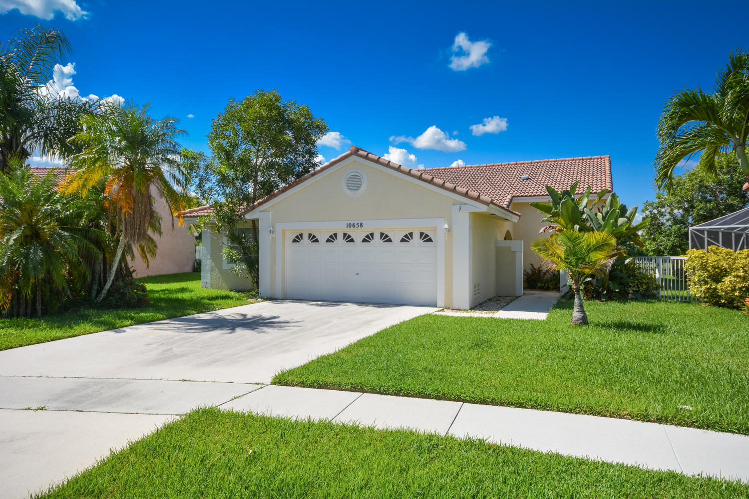 3/2 sited on a lake lot with a large side yard. Room for pool! Light and bright w/beautiful lake views. Roof has been replaced.Split floor plan. Screened lanai to enjoy watching nature lakeside. Excellent schools minutes away. Wonderful community with low HOA and fantastic recreation center. Close to great schools, houses of worship and South County Park. Rec center offers, pools, playgrounds, tennis, bball, picnic and bq pavilion, fitness center with manager on site. All room sizes approximate. HOA includes Cable & HBO.
