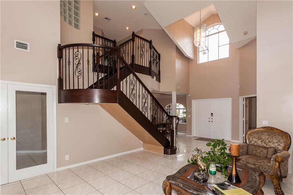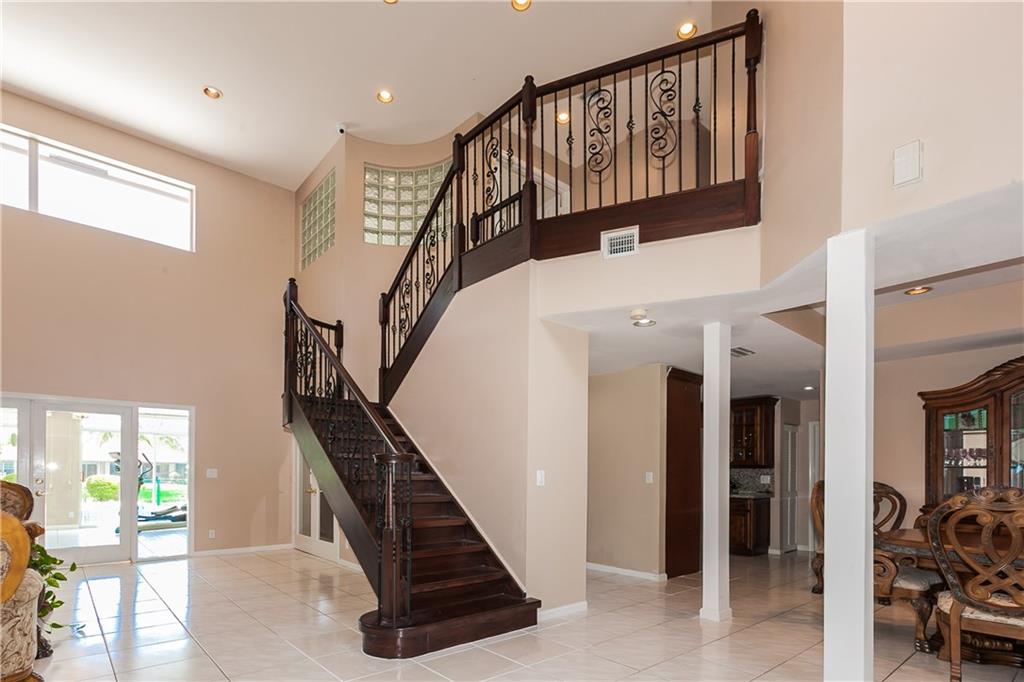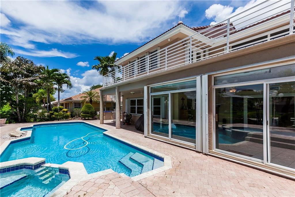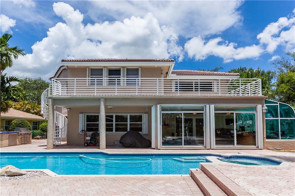 NEW ROOF/STAIR CASE 4/3 home w/ lake, oversized pool 40X14 , corner lot w/ high ceilings. Home upgrades: New designers wood kitchen cabinets, granite counter tops, new stainless steel appliances, LG 3 door refrigerator, Maytag front loader W/D, 3 A/C's, 18x40 pool & jacuzzi, built in bbq w/ 500 gallon tank. Large master with private balcony, rear Four Season enclosed patio, accordian shutters, outside spiral staircase, basketball court, pavers, converted 1 car garage = playroom no HOA A + schools.