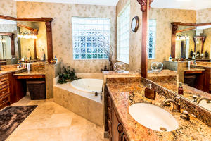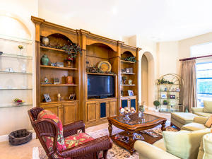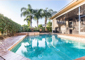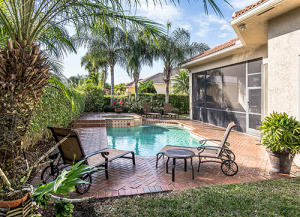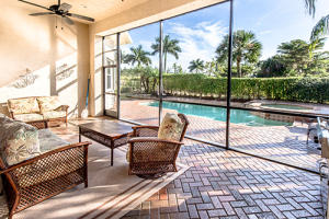Tropical landscaping and serene privacy greet you as you enter through the custom leaded impact glass doors. Sought after Southern exposure with 4BR(one used as a study)/3 full BA + 2 half baths are spacious and upgraded. Custom unit in study and family room, including a large flat screen TV. Surround sound throughout, accordion shutters, heated pool and spa, wet bar transitions into the living room, dining room and kitchen. Stunning custom kitchen with double ovens and upgraded appliances. Kitchen could be in a design magazine. Screened patio , built in gas grill, pool is outside screen area. Master bedroom overlooks pool, has large sitting area, marble floors in bath, bidet, Jacuzzi tub ,very elegant. All closets are done with built ins. A great home all around!