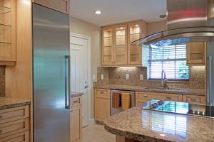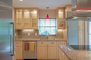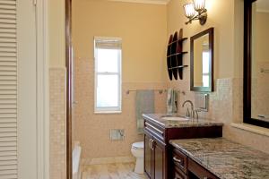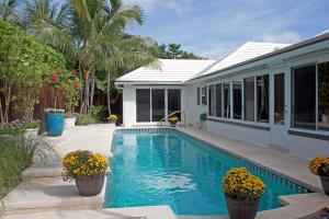 This stunning 3 bedroom 3 bathroom Bermuda style home is situated on a quiet cul-de-sac and features 9-10 foot ceilings with two master suites. The third bedroom has its own ensuite as well. The nicely appointed kitchen includes stainless appliances, granite counters, LED recessed lighting and glass shelving. The spacious living and dining area leads you to a beautiful east facing covered patio and walled garden with its own waterfall feature. The first master suite has an adjoining sitting room which opens to an elegant pool area. The pool is a 40 by 10 foot lap pool with a full length waterfall.