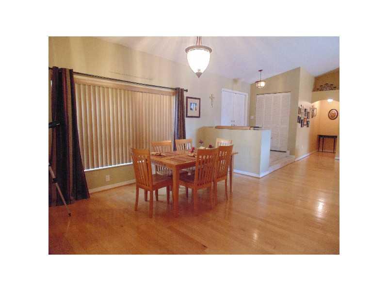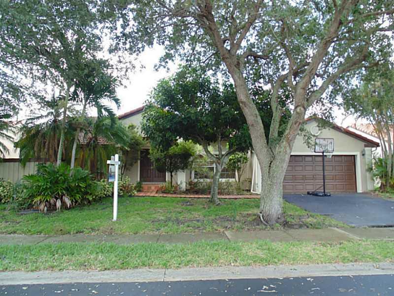 Terrific split floor plan in this 4 bedroom 2 bath pool home in Residences of Sawgrass Mills and close to everything. Entry step down into living rm. with a view of the pool. Separate dining room leads to kitchen w/island and opens up to family room. Lar ge family room w/doors to patio. 3 bedrooms off family room with cabana bathroom. Tiled foyer, kitchen & baths. Wood floors in living area and bedrooms. Vaulted ceilings. Huge lot and deck. Covered patio with bar area. Great for entertaining .