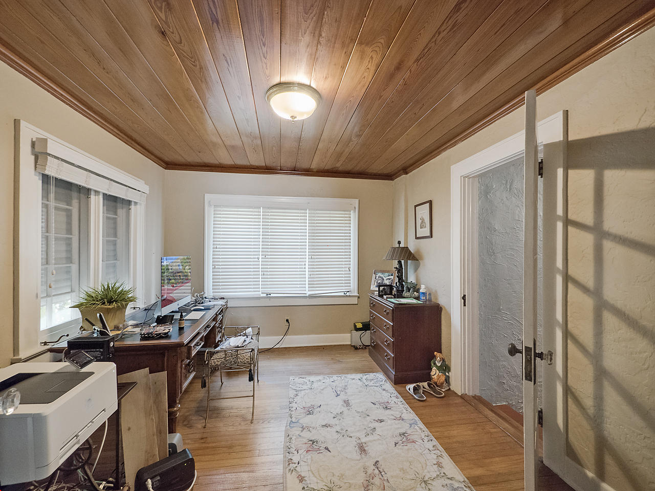 REDUCED! Off Street Parking AND RENTAL INCOME! LET THE TENANT COVER THE TAXES! Restored Old Florida Spanish Style home awaits you! Main house has 4 large bedrooms. Separate 2.5 cr garage with off street parking and 2BR 1BA apartment above. Enter the old world charm and beauty with all the modern comforts. Ground floor features oversized living room with working fireplace, Dade Pine hardwood flooring. Large formal dining room for entertaining and family gatherings. Step down to cozy den with pecky cypress ceilings and moldings and full bath. Easily convertable to additional bedroom. Large office with wooden ceilings. Oversized kitchen with Spanish tile, huge center island with prep sink and breakfast nook which overlooks patio and yard.