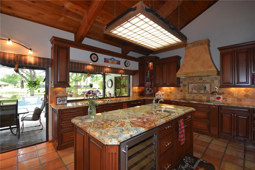 Elegant,MOVE IN READY,custom family home on quiet cul-de-sac with large circular drive.Original owners totally renovated and updated this mountain-style,open floor plan, large rooms,split 4BR, & office,3.5 bath on wide canal.Soaring wood beam ceilings, skylights,wood-burning FP in LR,wet bar in FR,stainless appliances,granite throughout, walk-in closets,gardens,fountains,large paved patio & pool (removable fence).Kitchen & Master Bath look like they are out of Architectural Digest as does rest of house.