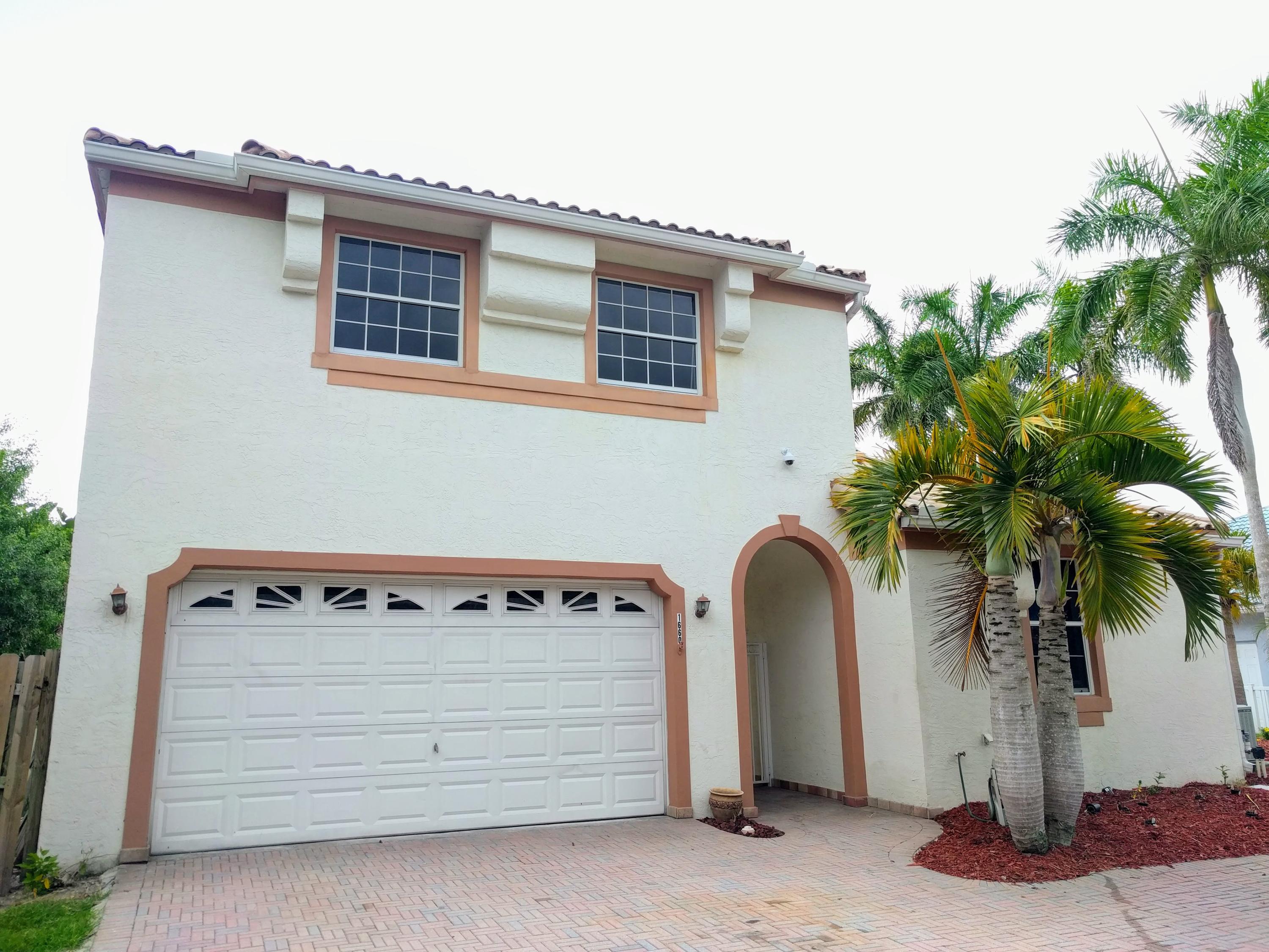 Lowest price per square foot in Palm Beach Farms by far! Cul-de-sac circle driveway tastefully landscaped with gated archway that opens to an enclosed bricked courtyard. Detached guest house/office or perfect for mother-in-law suite. French doors, light and bright cathedral ceilings first floor with high windows. Vaulted ceilings and marble floors throughout 2nd floor with brick paved balcony off master bedroom. 20 foot wall between I-95 and Mizner Forest already approved for 2017, which could further enhance property values. Minutes from fine shopping and dining as well as I-95 and Florida's turnpike.