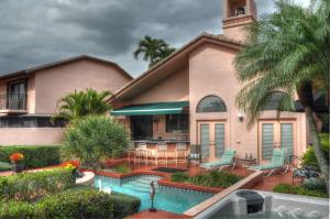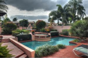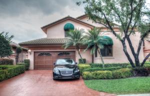 The over sized patio on the lake facing the fountain has a heated pool and a built in bar to enjoy what ''The Florida Lifestyle'' really means! The bar even has a special weatherproof TV that cost $3,000! This very popular La Palma model is prized for a large Master Suite on the first floor with a HUGE walk-in closet.The marble floors give a touch of distinction to this lovely home.The roof, pool heater, diamond brite, circuit box & power awning have all been updated. NEED a POWDER ROOM? LAUNDRY CAN EASILY BE CONVERTED.Membership in The Club At Boca Pointe is voluntary...and if you enjoy a country club lifestyle...be sure to ask about the outstanding programs and deals that this fine club has to offer!!