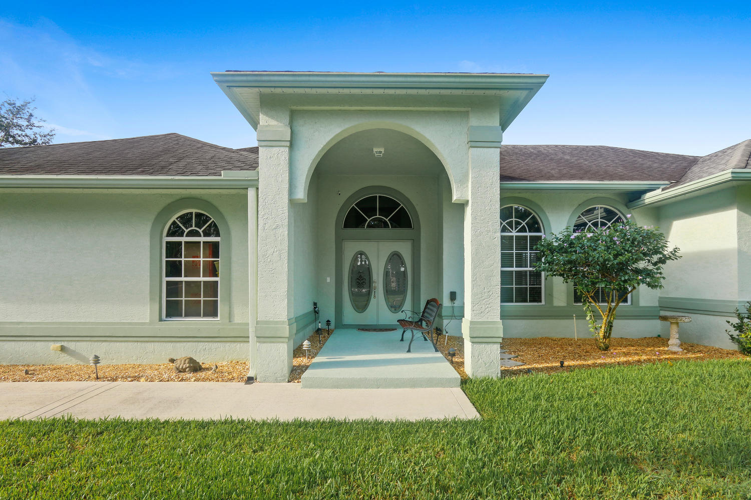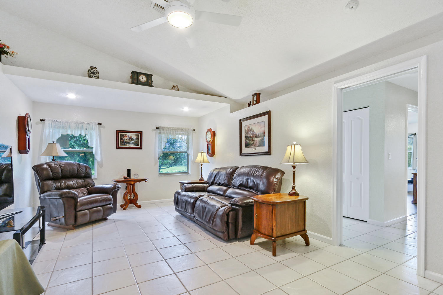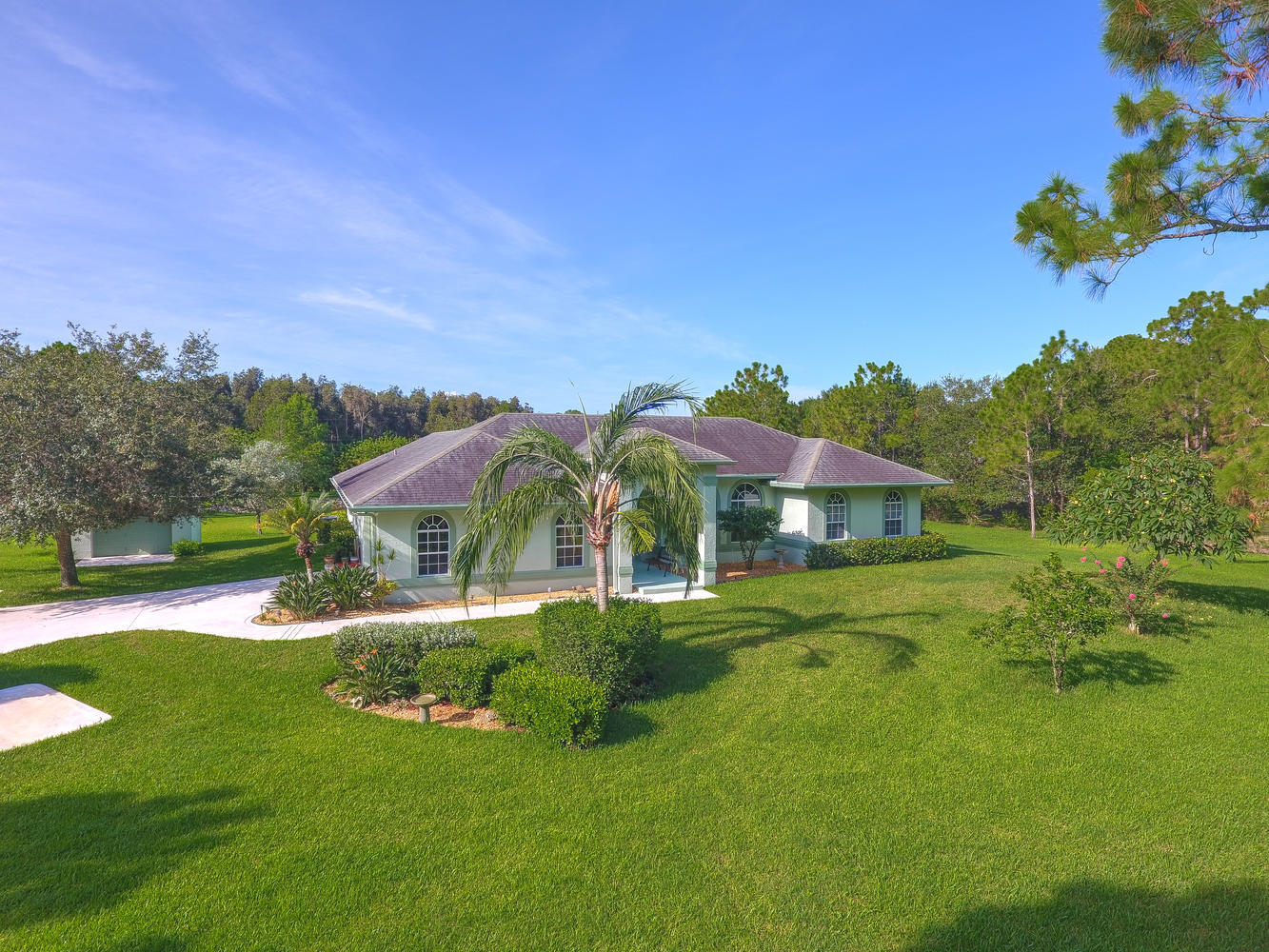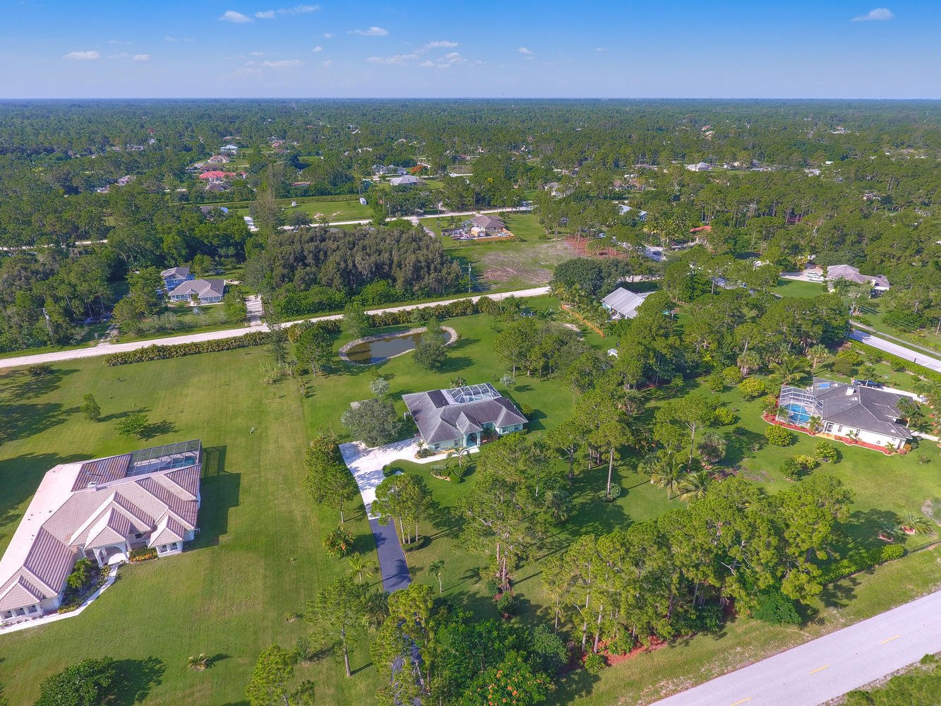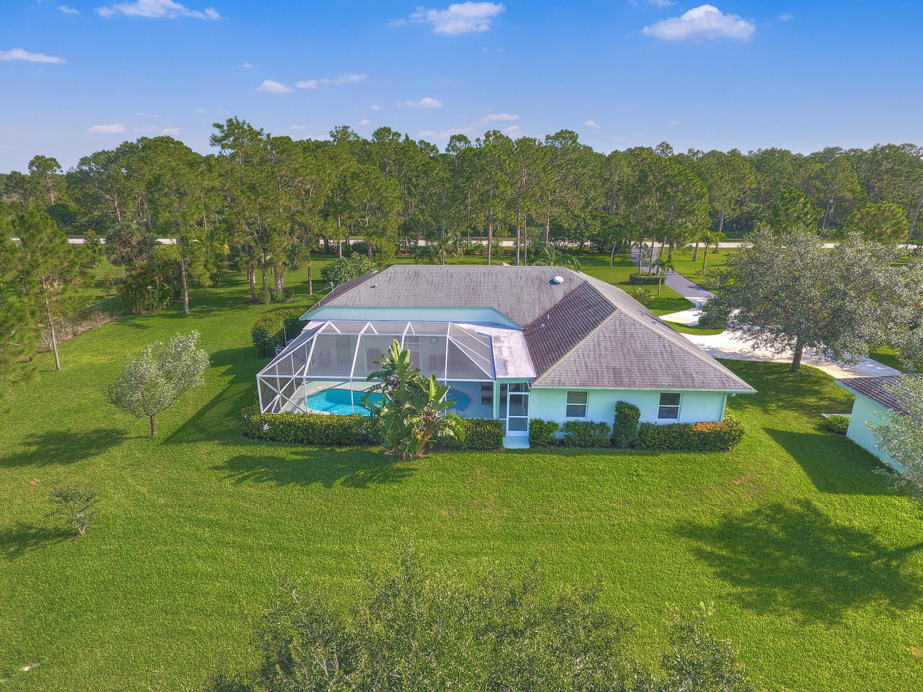 Absolutely beautiful 3BR/2BA home with a screened pool on a large 2.35 acre located on a paved road with CITY WATER! A long paved driveway leads up to the home with a welcoming double door entry with glass doors and large front porch. Spacious floorplan with tile flooring thru-out. The kitchen offers stainless steel appliances, pantry, and a breakfast area to enjoy your morning coffee. Lots of room to entertain with a family room, living room and a formal dining room. The dining room offers arched windows, chandelier, and wood blinds. The living room is tiled with a ceiling fan and light, arched window, wood blinds, & window treatments. Large master suite. Stunning yard with beautiful landscaping, & private pond! Gorgeous piece of property in the Loxahatchee area. Great schools nearby.