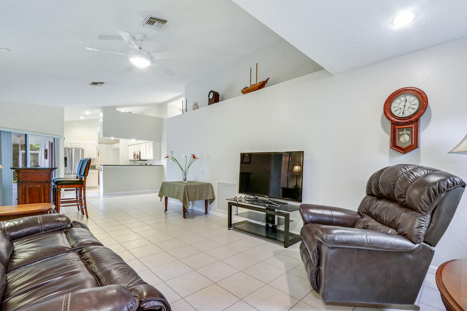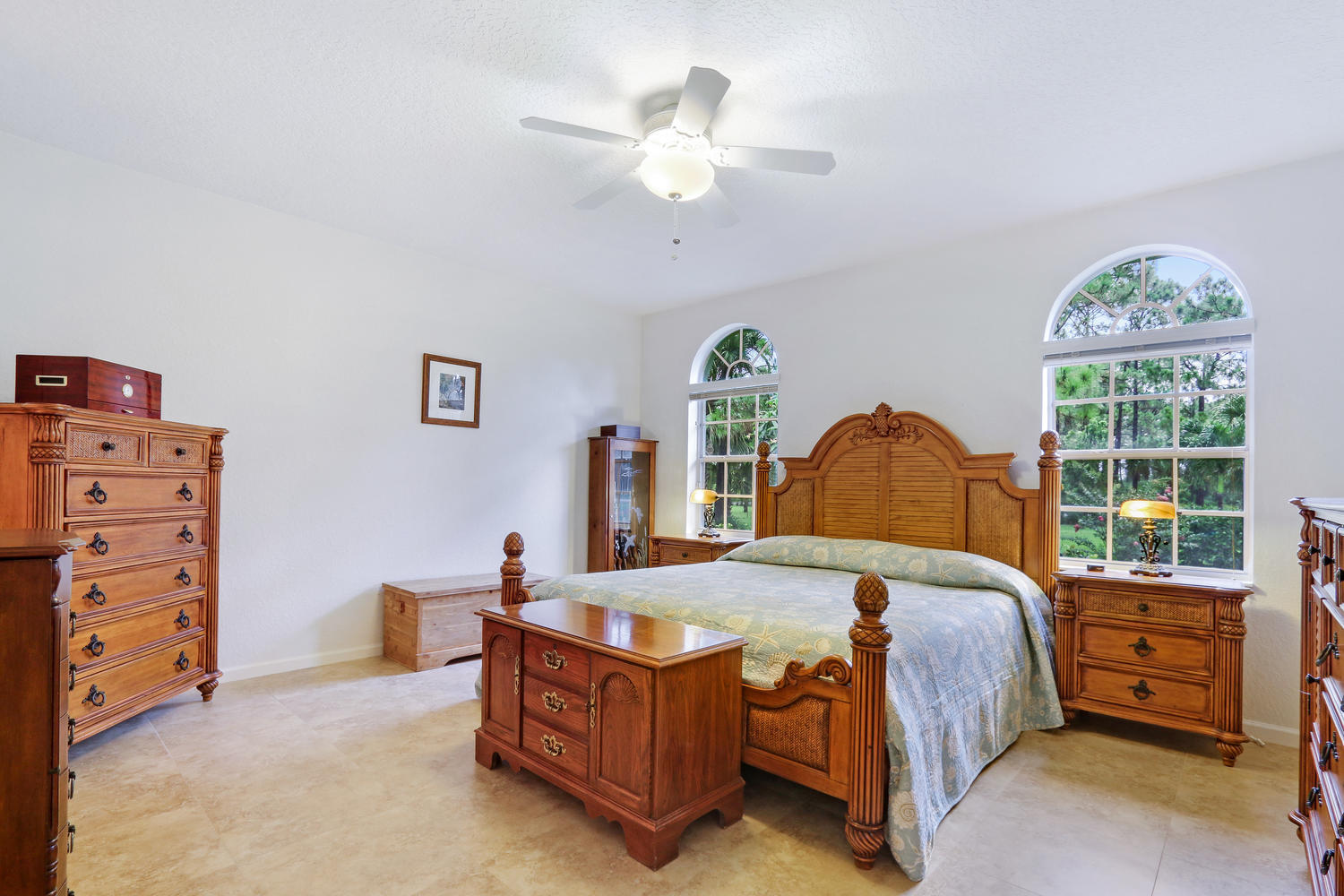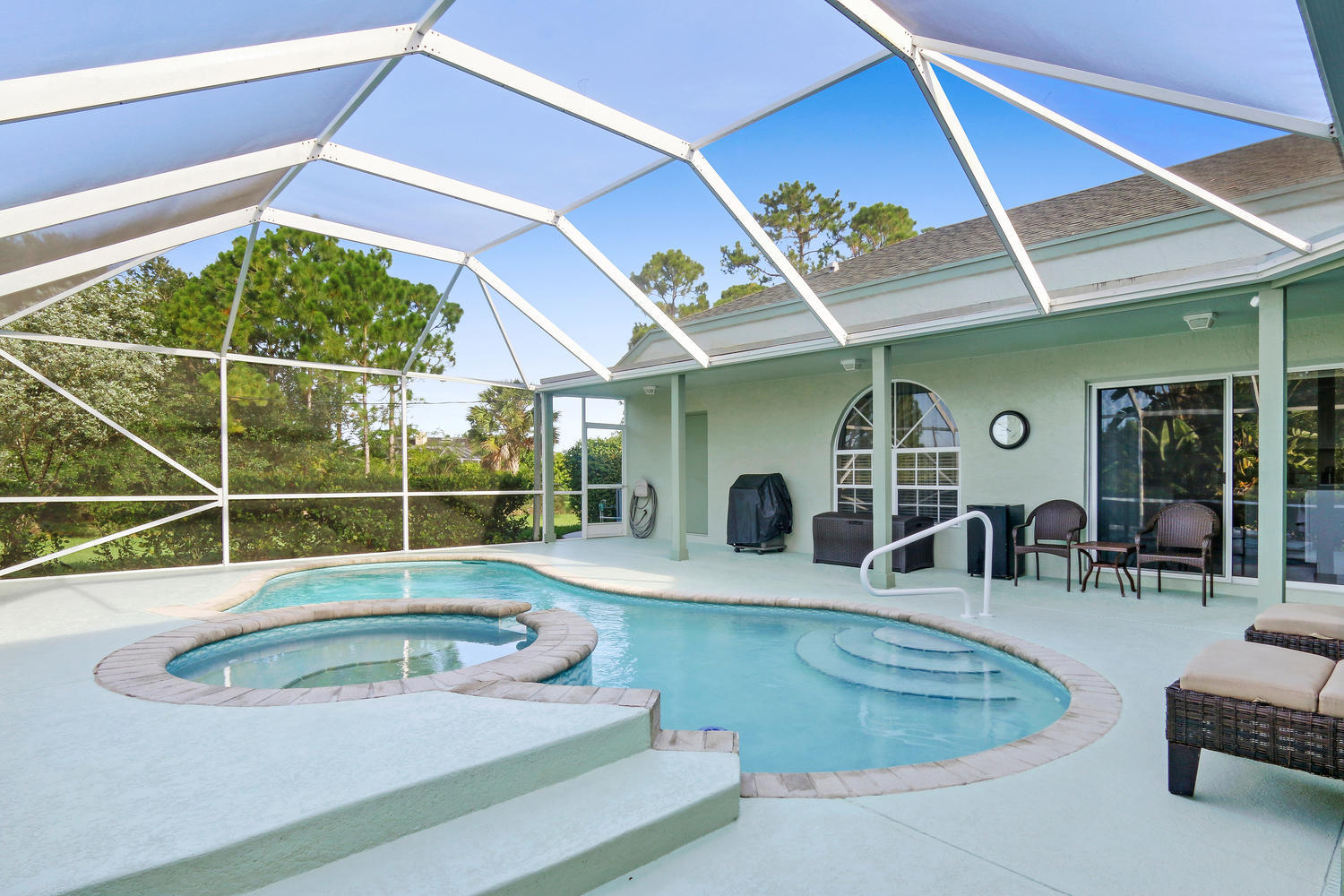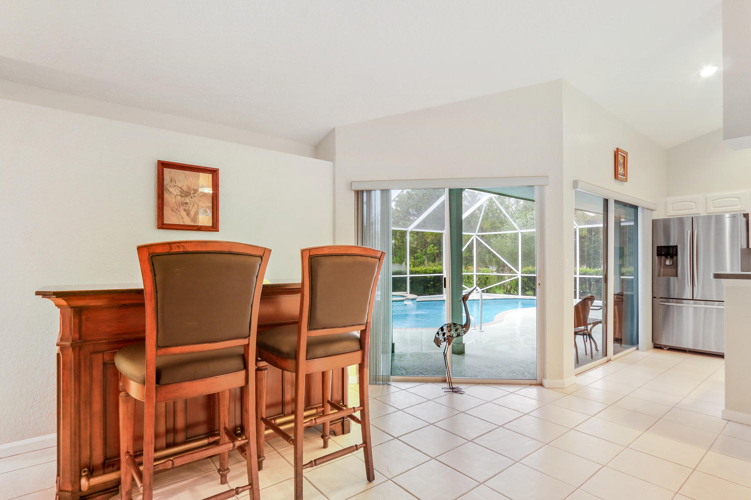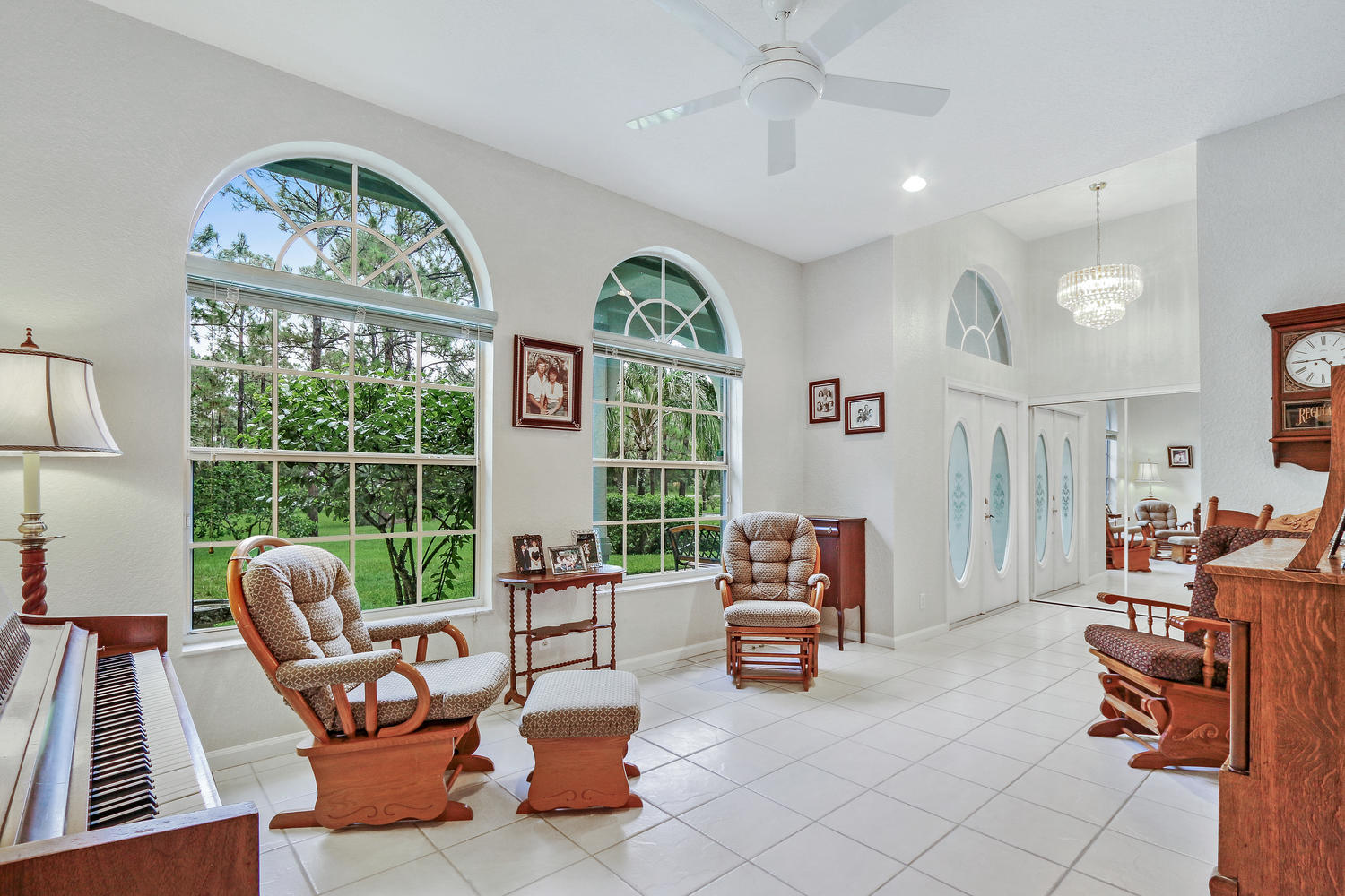 Absolutely beautiful 3BR/2BA home with a screened pool on a large 2.35 acre located on a paved road with CITY WATER! A long paved driveway leads up to the home with a welcoming double door entry with glass doors and large front porch. Spacious floorplan with tile flooring thru-out. The kitchen offers stainless steel appliances, pantry, and a breakfast area to enjoy your morning coffee. Lots of room to entertain with a family room, living room and a formal dining room. The dining room offers arched windows, chandelier, and wood blinds. The living room is tiled with a ceiling fan and light, arched window, wood blinds, & window treatments. Large master suite. Stunning yard with beautiful landscaping, & private pond! Gorgeous piece of property in the Loxahatchee area. Great schools nearby.