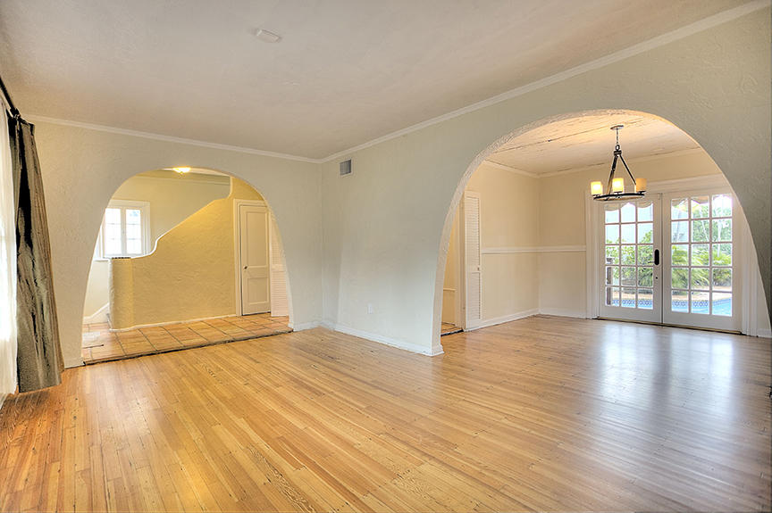 Look no farther! A 2-story Spanish style home with pool, guesthouse and covered wraparound porch 2 miles from Downtown and less than a mile from Northwood Village. The main house boasts 3 bedrooms, 1.5 baths, dade county pine hardwood floors, perky cypress ceilings, a fire place, french doors leading out to the pavered patio with welcoming pool. Re-roof done in 2009. Pool/patio renovated 2010. New hot water heater. Newer 2-zone split AC units. The cottage has a full bathroom and kitchenette.