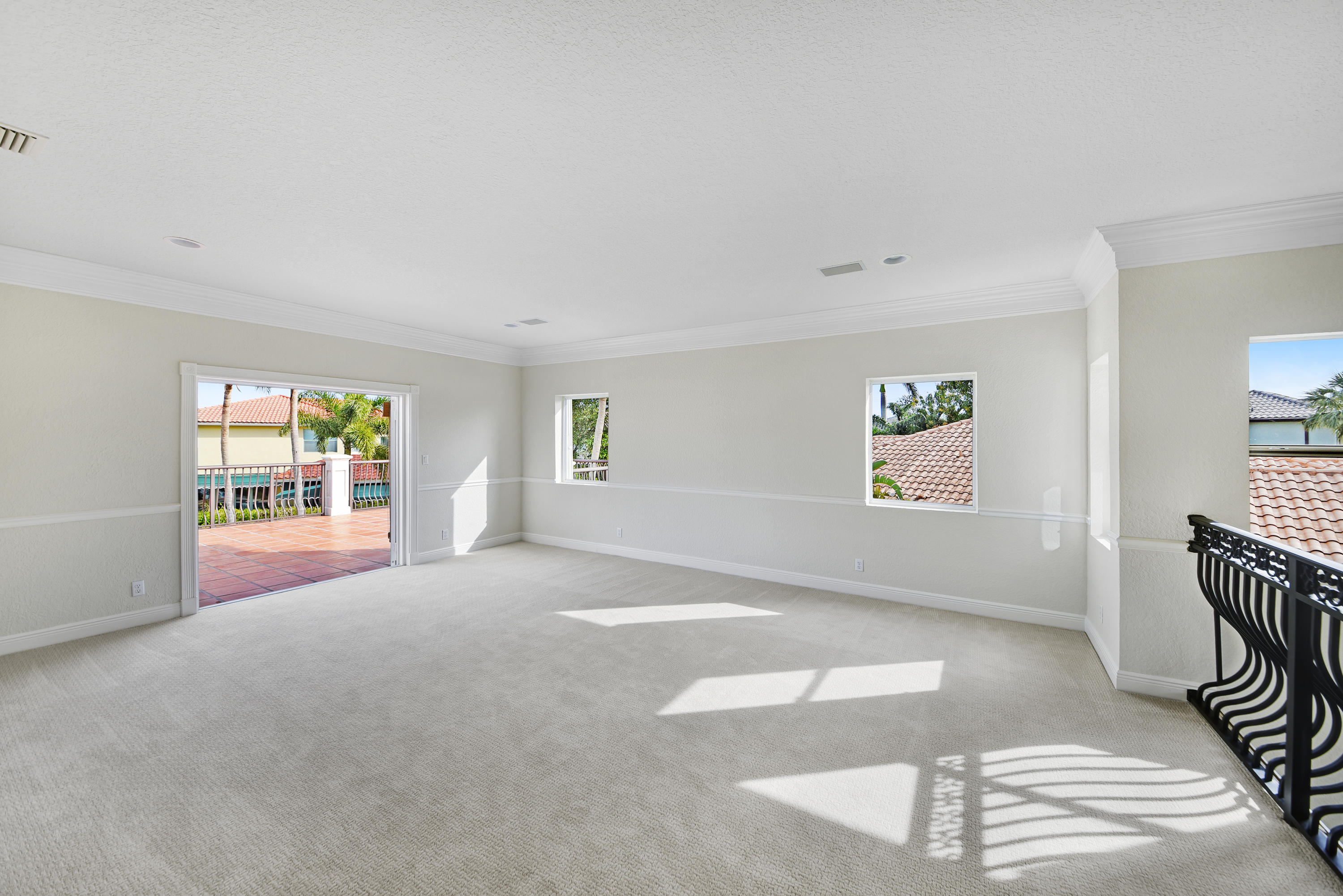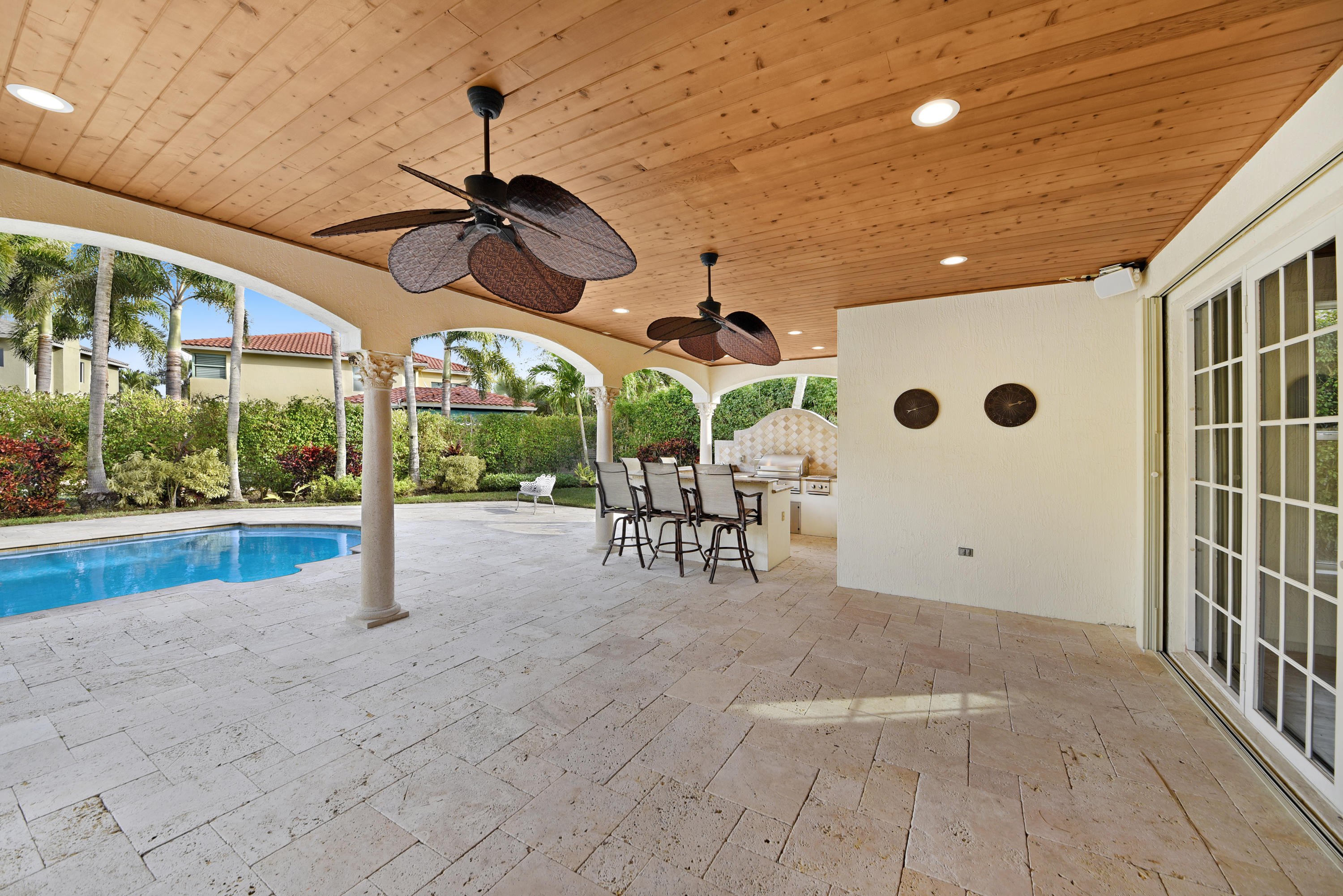 Former Developer home. One of the largest homes on one of the best lots within Boca East Estates. In addition to 5 bedrooms and a playroom is a sensational loft/upstairs recreation room that leads out to a 350 square foot balcony surrounded by mature, 30' coconut palms which overlooks pool. 10' ceilings downstairs, extra large kitchen with walk-in pantry marble floor. Remainder of 1st level, beautiful oak planked flooring. Living room has a wood burning fireplace. French doors throughout. Huge covered patio with bar /grill refrigerator, ice machine etc. One of the largest backyards in the subdivision.