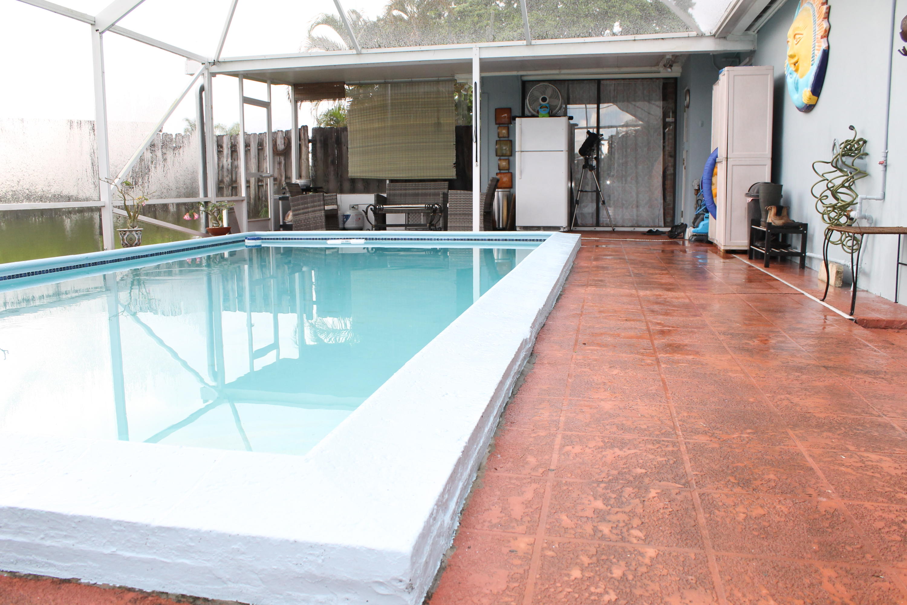 Adorable 3 bedroom, 2 bath pool home on a 3/4 acre private lot located on a wide canal with newly painted exterior. Tile floors throughout the entire house, beautiful dark wood cabinets with granite countertops in kitchen, Enormous 25 x 12 Master Bedroom with updated bathroom with granite and glass basin. Guest bath has wood tile flooring, new vanity. PGT windows with hurricane panels. Large fenced yard with screened in pool and fire pit great for entertaining. Sprinkler system for lawn comes from the canal source. Enjoy entertaining under the screened in patio over looking the pool. Two Sheds for extra storage.