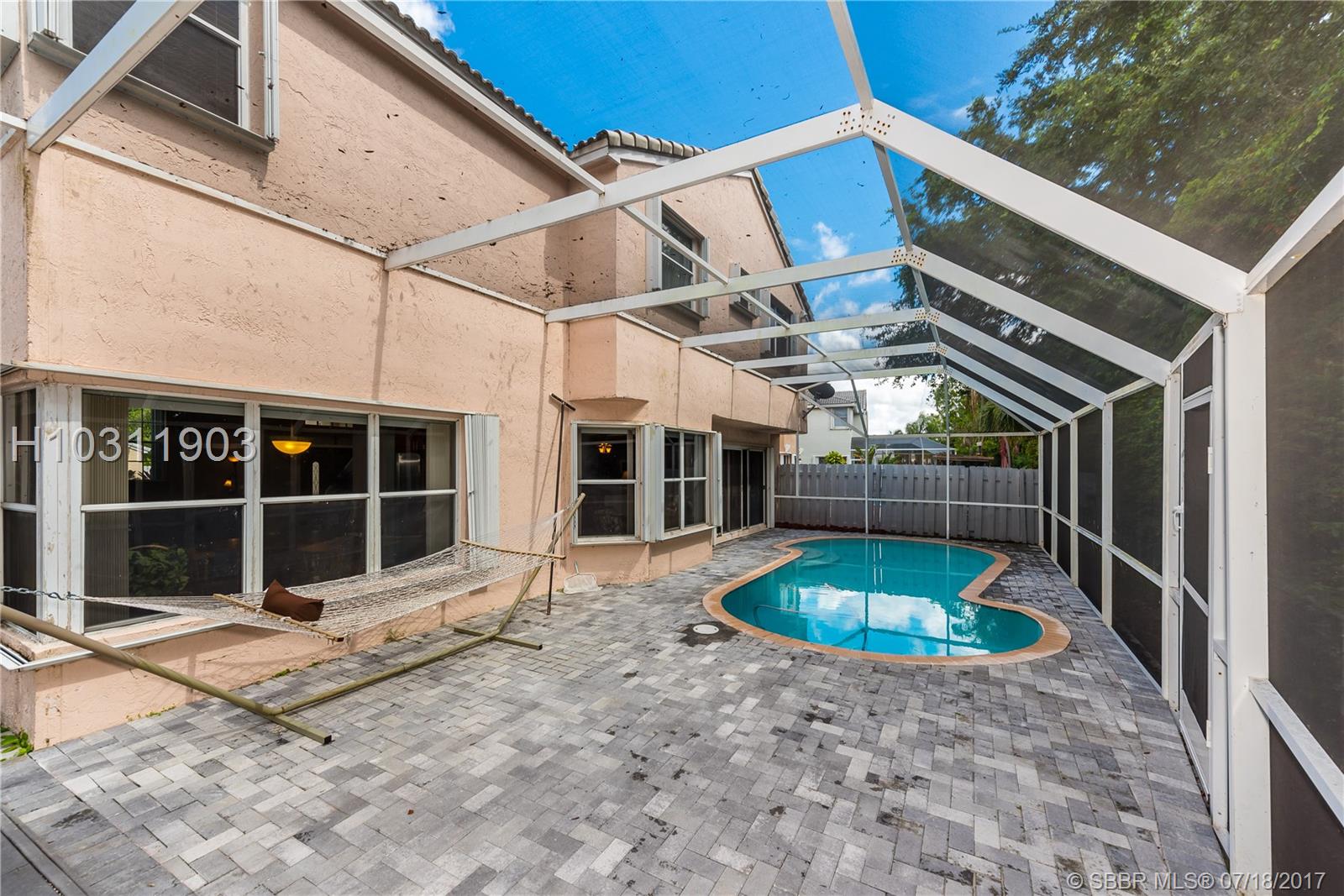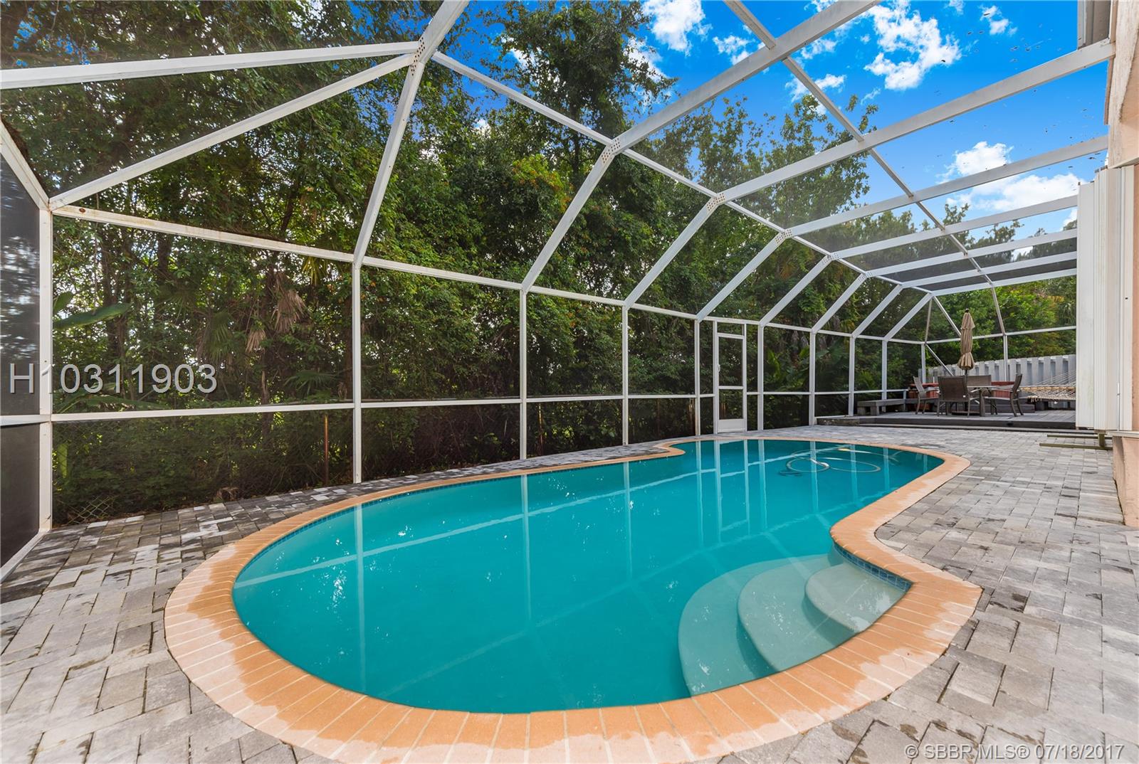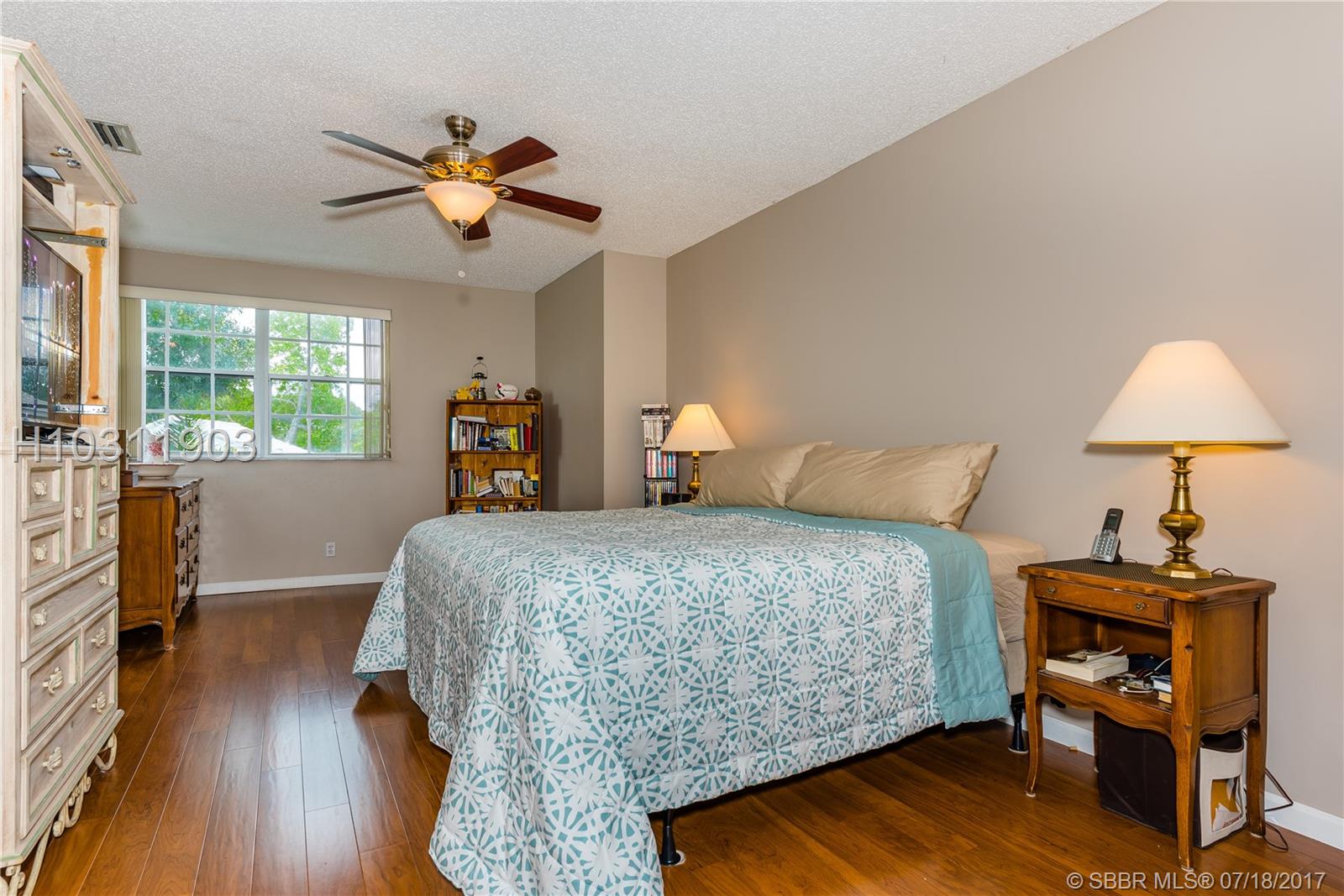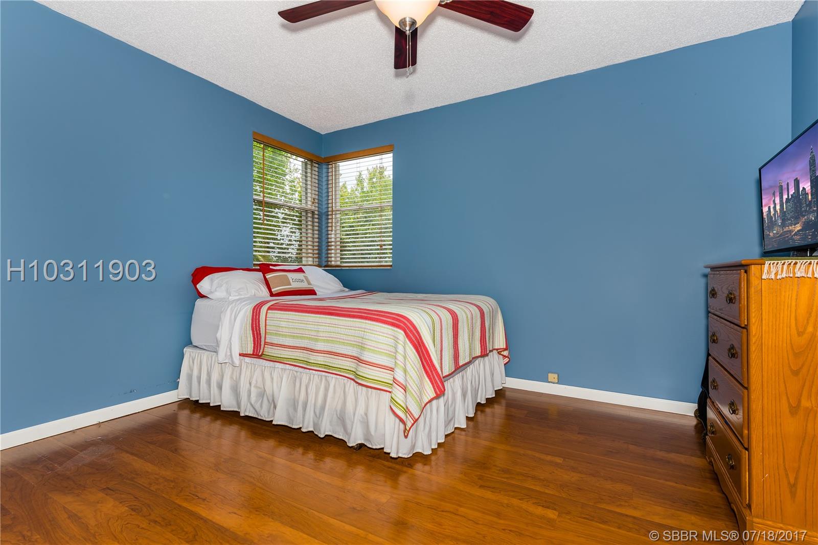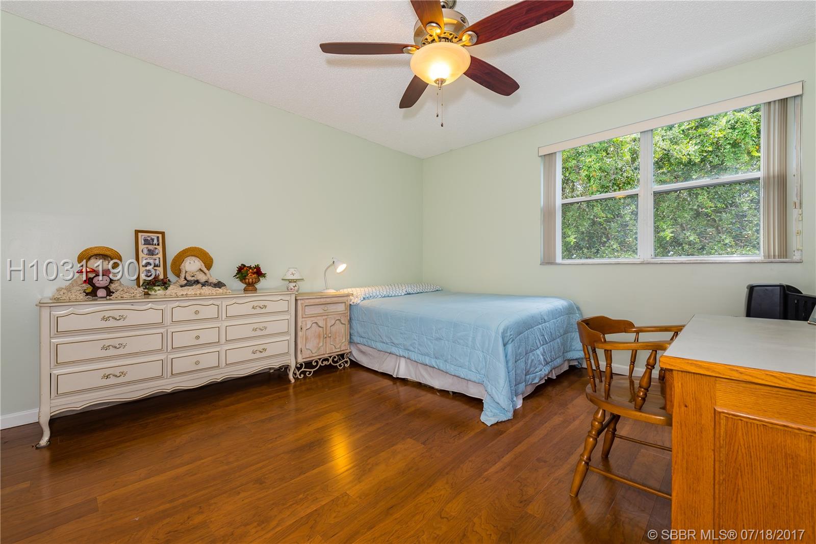 Look no further! This 4 bedroom has 3 full bathrooms, is spacious, well kept and has numerous upgrades. The huge master suite upstairs, has a king-sized bed with an oversized walk-in mirrored closet that opens into a spa-like bathroom, freshly tiled, with his & her wood w/granite sinks. All bedrooms have laminate flooring upstairs. Whether full sized or queen sized beds in the rooms, there is still plently of space for furniture and even excercise equipment! The kitchen has stainless steel appliances, granite counter tops, plus an island, wooden cabinets & pantry, opens into a breakfast nook, that overlooks a den and a screened expansive patio & deck area beside the water with lush vegetation. There is a full sized laundry room with washer & dryer, plus has accordian hurricane shutters!