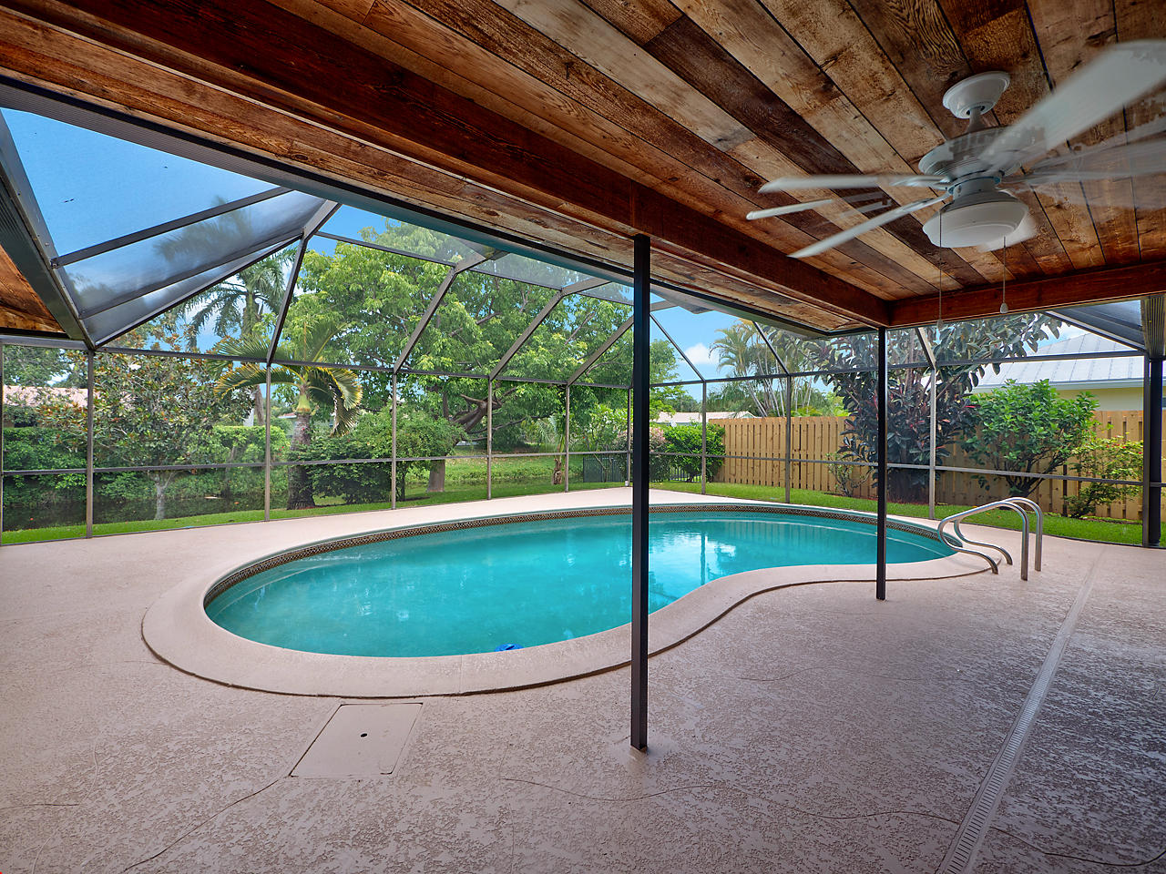 Great Find! Welcome home to Lake Floresta Park in East Boca. Step inside and feel the peace and serenity of a large living room plus family room, dining room, spacious owner's suite with pool access, an ensuite with shower jets and a custom walk-in closet. The 3 additional bedrooms are also generously sized for this area. Special touches include an upgraded kitchen with designer backsplash, granite, and stainless steel appliances. Rich tile flooring in main living areas, large 2 car garage, newer solar hot water heater and new A/C. Outback you will enjoy a large and fun screened-in living area with a cool pool. Just beyond you can relax with peaceful views of the canal and canoe rides to Lake Floresta where you can enjoy tranquil settings and watch beautiful wildlife. CLICK MORE..