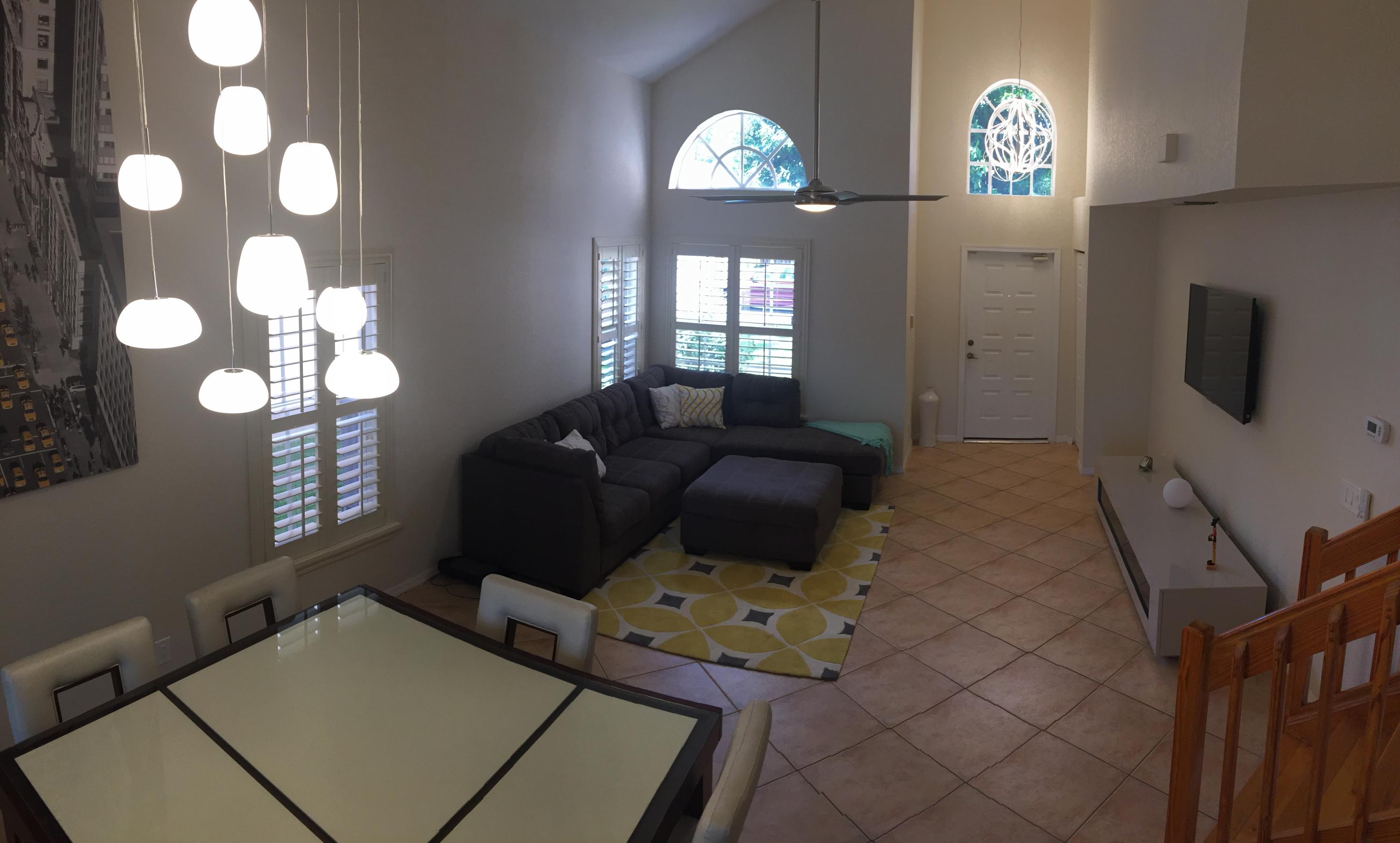 Light and brightNewly painted interior50k clean and modern kitchen/new appliancesWine chillerGlass backsplash with back lightingItalian porcelain tileExtra wide islandLarge screened in patio with full lake viewNew A/CMove in readyFurniture negotiableExcludes foyer and dining room chandeliers