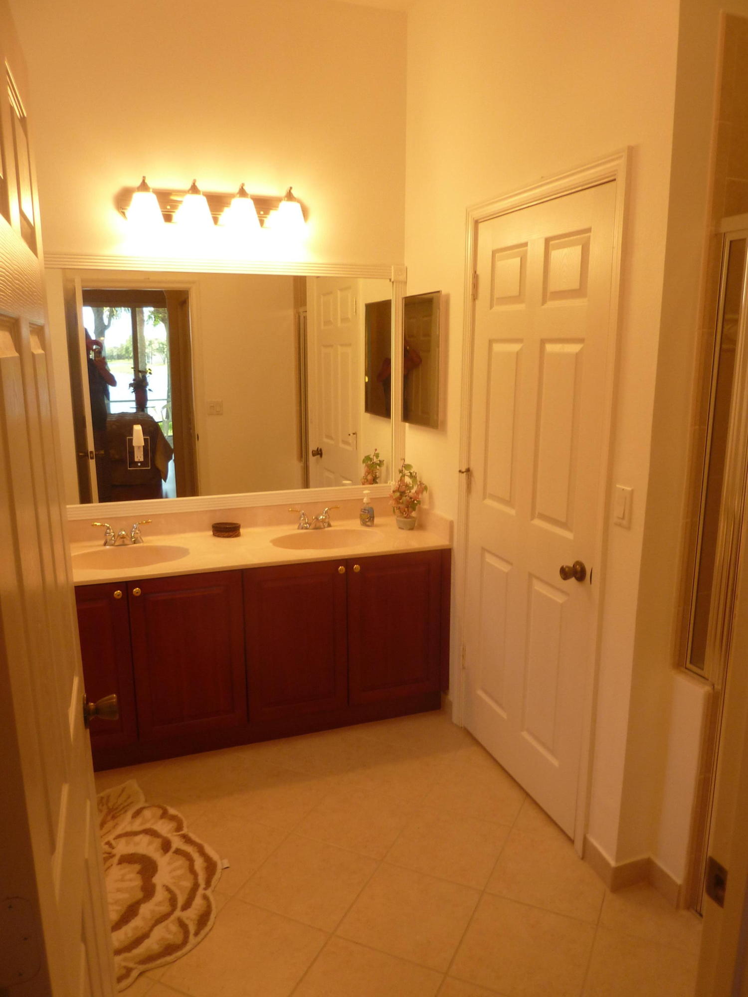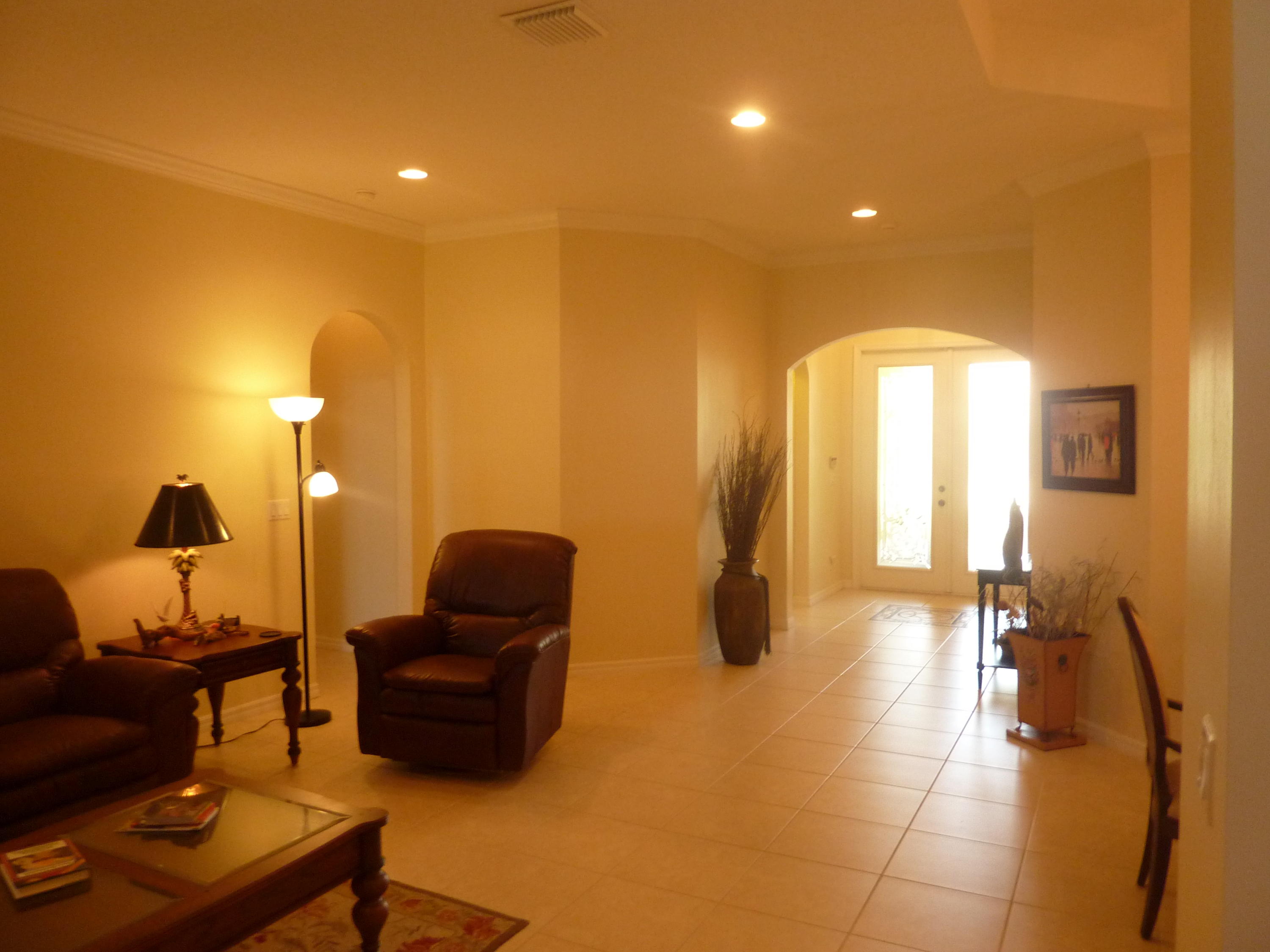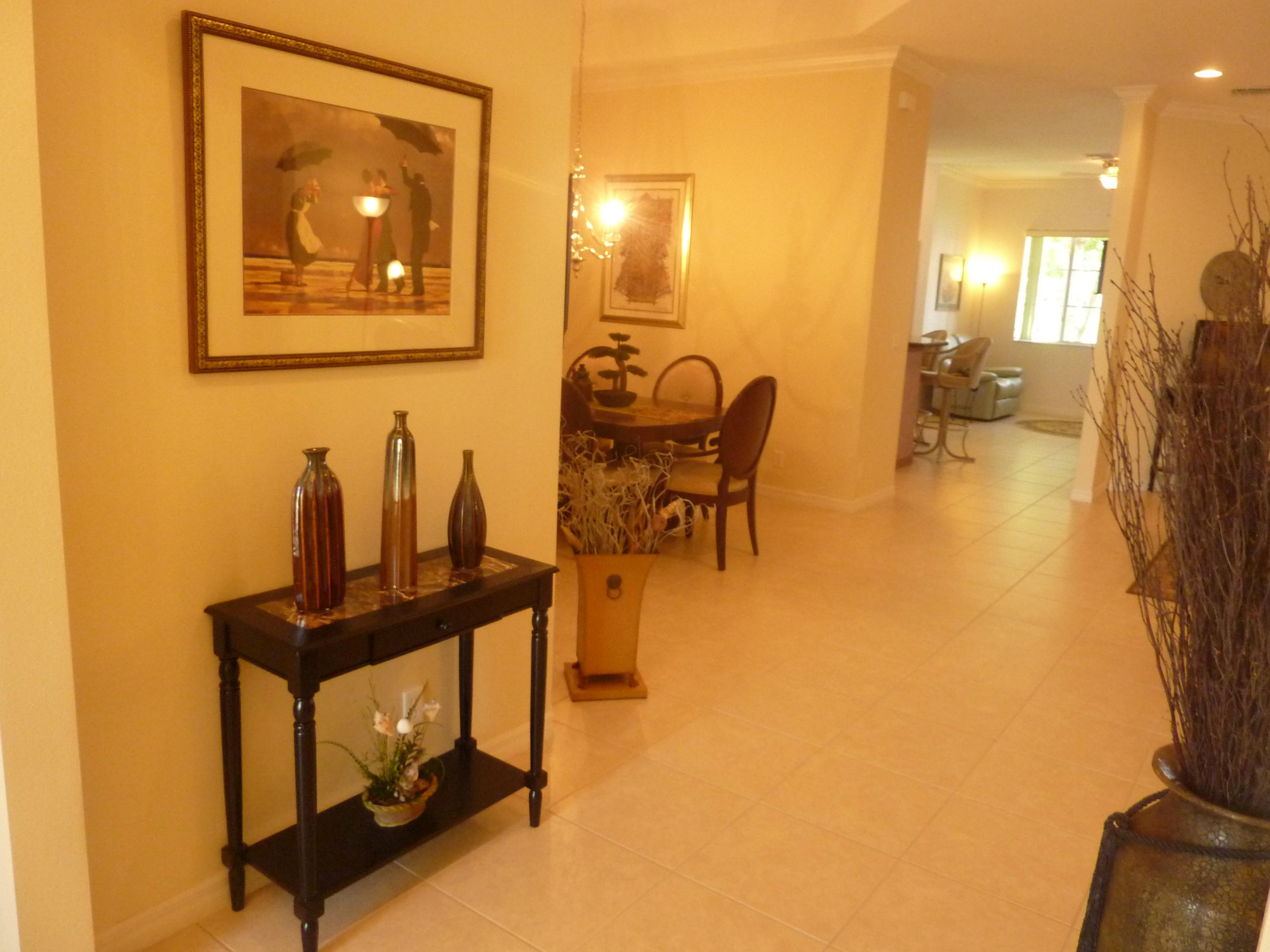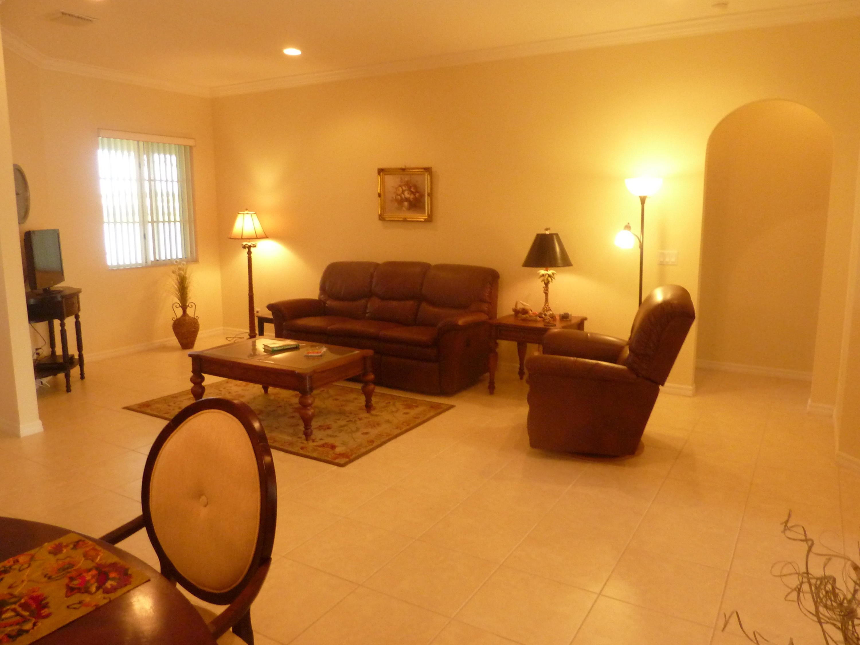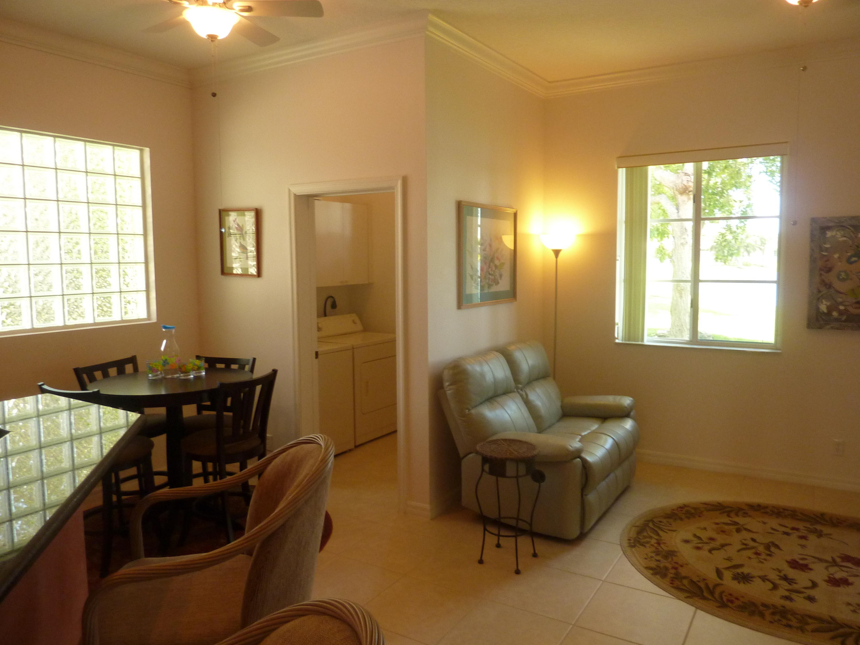 WHAT A VIEW!!! Long lake view from family room, living room and master bedroom. Spacious, open floor plan, meticulously kept 3 bedroom 2.5 bath waterfront home. Neutral tile throughout living areas and wood laminate in all bedrooms. Beautiful kitchen with granite counters and upgraded cabinets, opens to family room which has sliders to the large screened patio with an amazing view of the lake. Split bedroom plan which is great for children and guests. Spacious master bedroom, with tray ceiling, with sliders to the large screened patio as well. Two large closets in the master bedroom and Jacuzzi tub with separate shower in the master bath. Formal dining room has tray ceiling as well and is perfectly located across from formal living room and next to kitchen. Crown molding throughout main