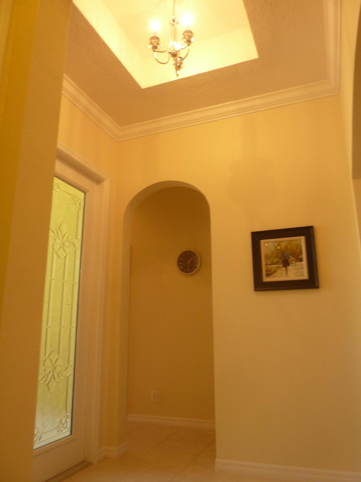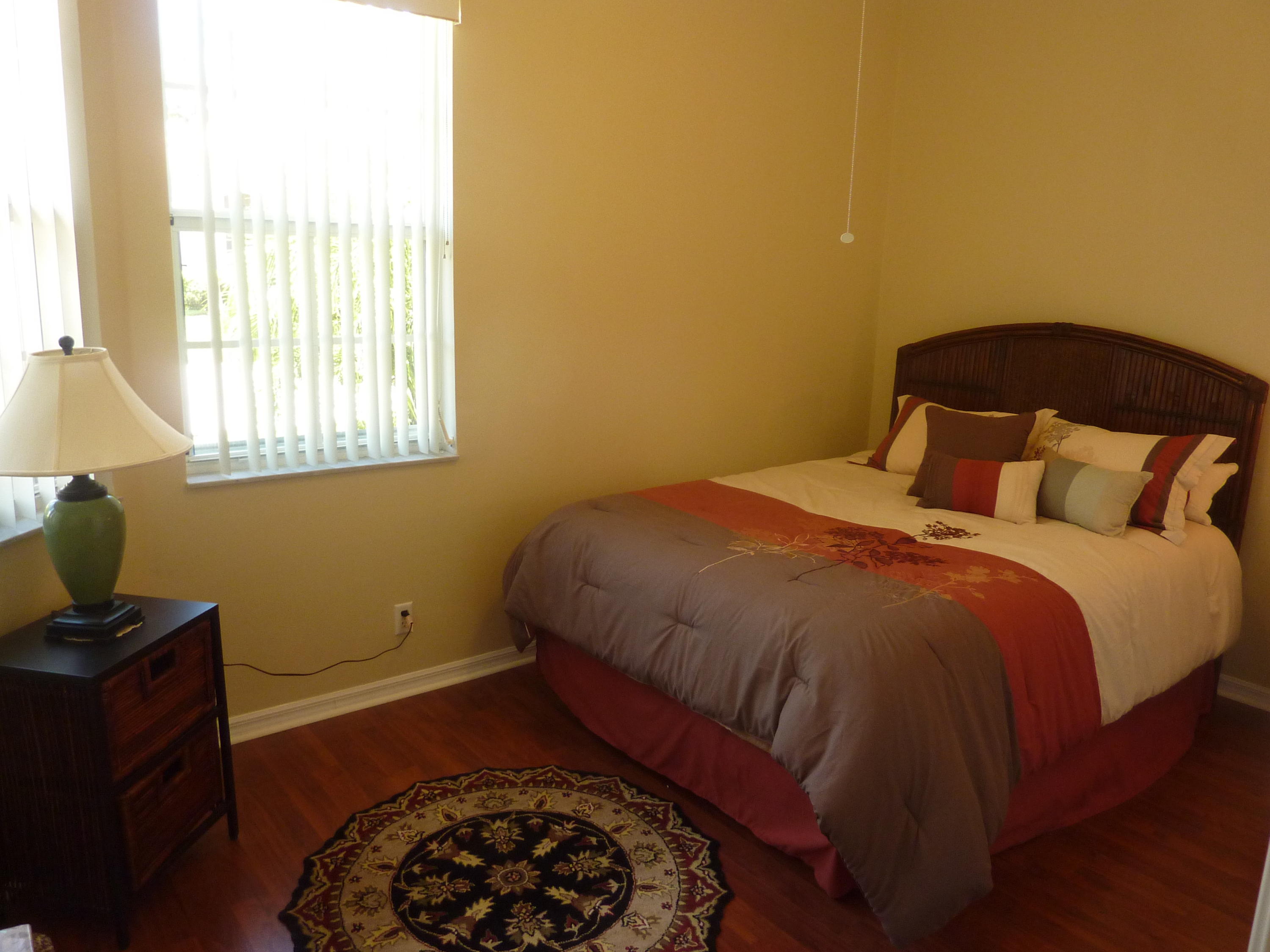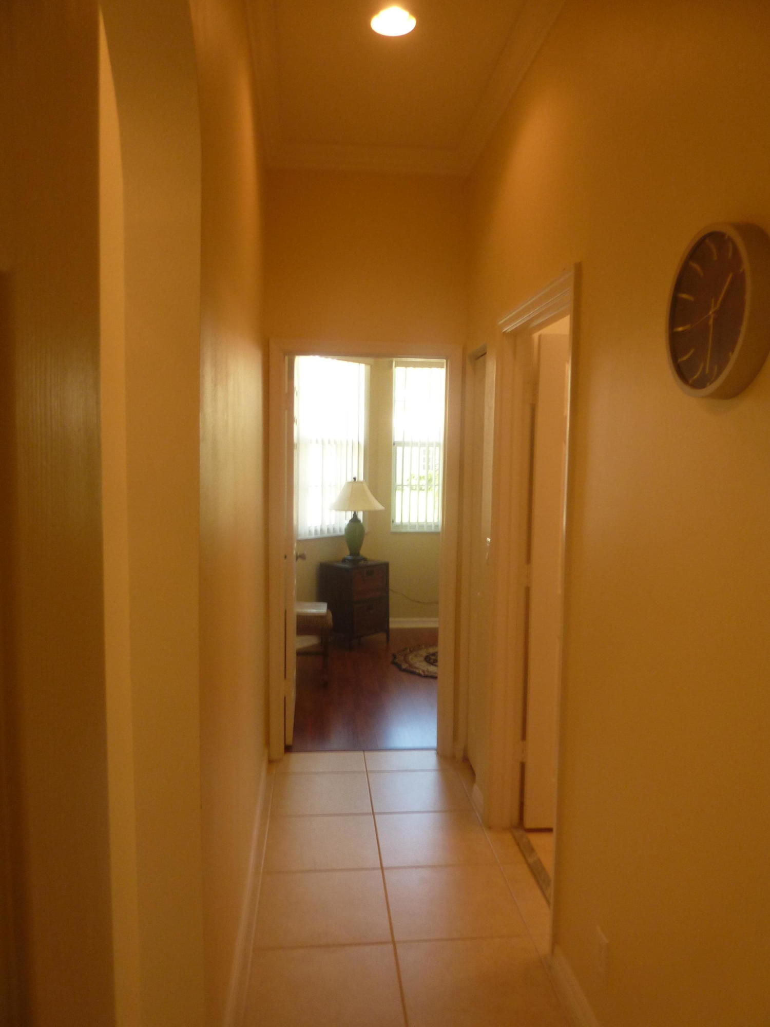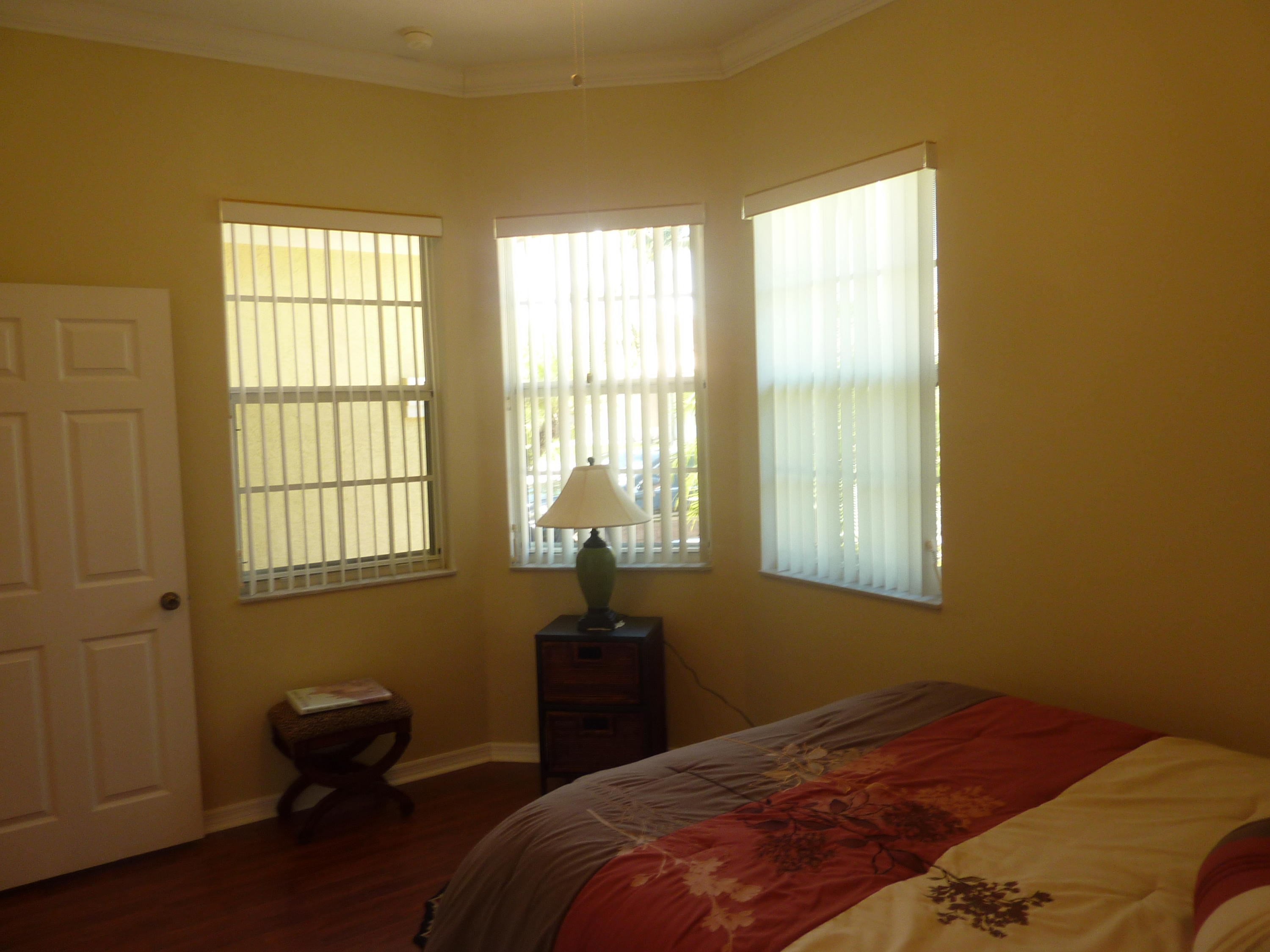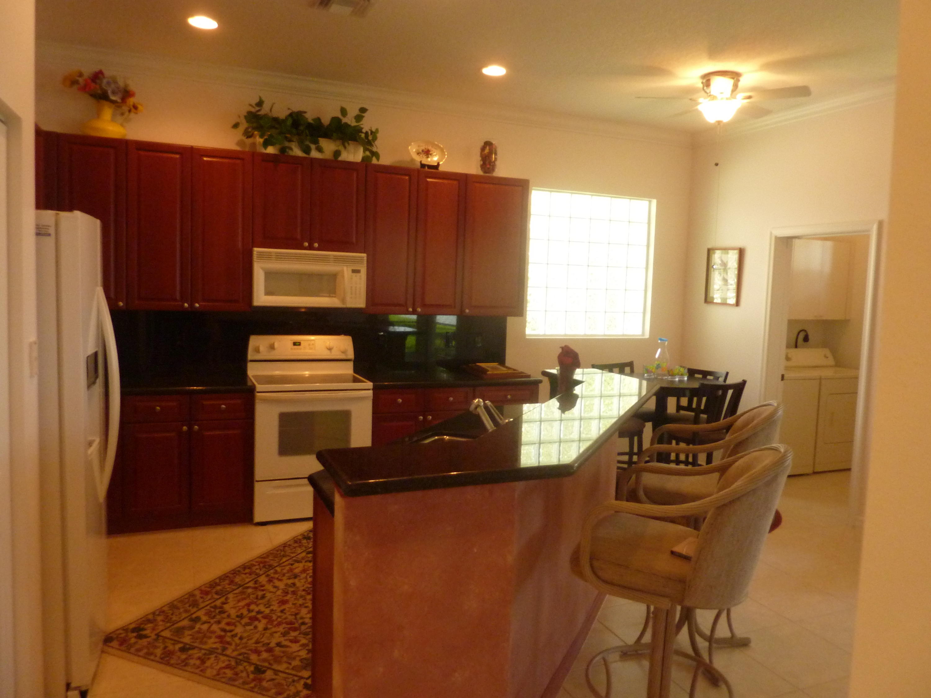 WHAT A VIEW!!! Long lake view from family room, living room and master bedroom. Spacious, open floor plan, meticulously kept 3 bedroom 2.5 bath waterfront home. Neutral tile throughout living areas and wood laminate in all bedrooms. Beautiful kitchen with granite counters and upgraded cabinets, opens to family room which has sliders to the large screened patio with an amazing view of the lake. Split bedroom plan which is great for children and guests. Spacious master bedroom, with tray ceiling, with sliders to the large screened patio as well. Two large closets in the master bedroom and Jacuzzi tub with separate shower in the master bath. Formal dining room has tray ceiling as well and is perfectly located across from formal living room and next to kitchen. Crown molding throughout main