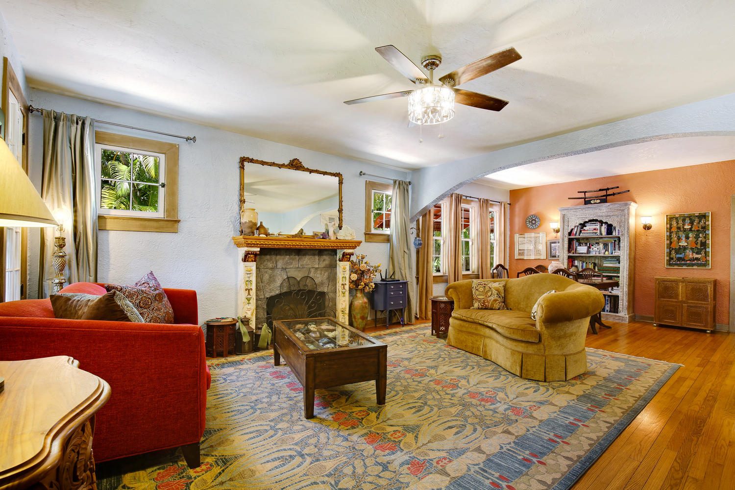 Rare combo: Spanish-style 1926 home, guest cottage and convenient location. A definite must-see. Great private residence or perfect investment opportunity for legal tenant or AirBnB. Unique Old Spanish charmer with beautiful touches and historic character in very desirable SoSo. 3-bed, 1-bath residence plus 1 bed, 1 bath legally rentable guest cottage/home office. Spacious and inviting, the main features lovely faux finishes and decorative archways. Bask in sun-filled Florida room or relax in living/dining area with fireplace. Living, Dining and bedrooms are graced with original hardwood floors. Galley kitchen features wood cabinets with wrought iron handles. Newer front-loading LG washer/dryer. Recline or play under a covered patio in the backyard. Guest Cottage