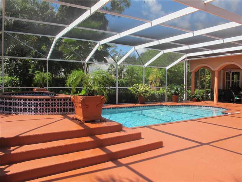 Lushly landscaped 1 acre estate with private tennis court and guest suite for in-law qtrs. Main house includes 4 bedrooms 3 baths and guest suite (built in 2007)includes 2 bedrooms, 2 baths and 2nd family rm. New addition features impact glass and main ho use includes accordion shutters. Fully tiled interior! Granite & stainless appliances added 5 yrs. ago! Volume ceilings! Fabulous outdoor entertaining! Screened pool with raised spa! Covered patio! Marble master bathroom w/ whirlpool tub! 3 a/c units