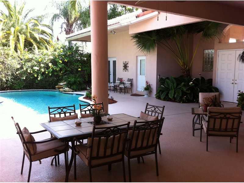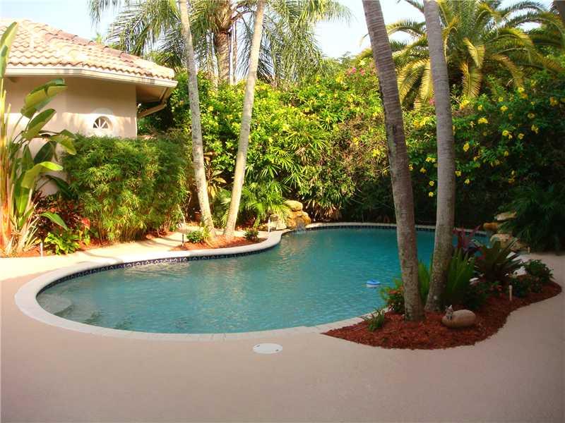 Resort style custom pool home on 1/3 acre, quiet interior lot. Huge patios & tropical foliage create the perfect Florida lifestyle. Total privacy & room to entertain a hundred guests. Lushly landscaped & stamped concrete circular drive up to dramatic port ico entry. Living areas & bedrooms overlook pool. Desirable split bedroom floor plan & updated kit. with granite, stainless steel appl. & double wall ovens. Newer A/C & large guest house has full bath. Oversized 2 car garage. Exceptional home & location!