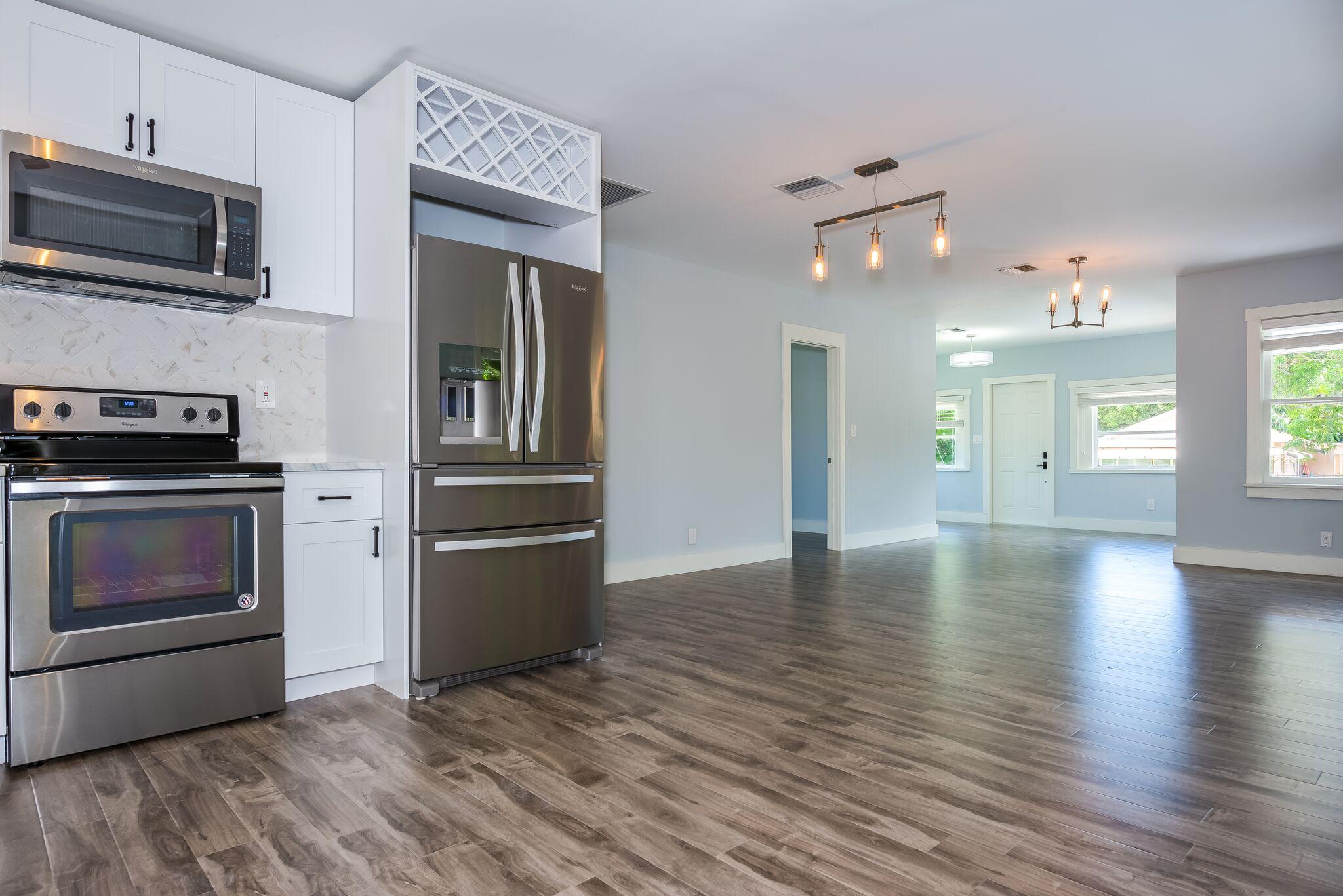 A magnificent and completely renovated 3 bedroom residence on a huge quarter of an acre fenced lot. The residence offers an open floor-plan throughout, spectacular modern flooring, white quartzite countertops and marble backsplash, top of the line stainless steel appliances, spa jacuzzi tub, Carrera Marble bathroom, in-house laundry, custom Martha Stewart closets in all bedrooms, and so much more. Found at the end of a quiet and private cul-de-sac, this home offers all of the features and privacy a family desires. The large backyard is surrounded by a new 6-foot privacy fence and has room to build a pool and park a boat or RV. This wonderful family home has it all.