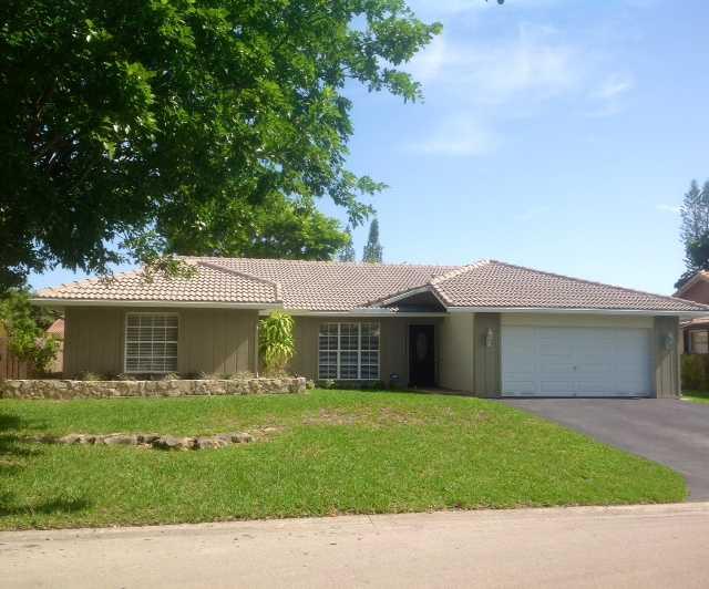 Price Reduced on this attractive three bedroom ranch in quiet friendly neighborhood. Shows like a Model Home. Beautiful pool with a pavered deck in fenced in backyard. Gorgeous stone wood burning fireplace in family room. Upgraded tiled second bath. New er Black Kitchen Aid appliances including a brand new dishwasher. Light bright tile in main areas, carpet in bedrooms. Custom Blinds. Two car garage No HOA. Great Coral Springs Location.