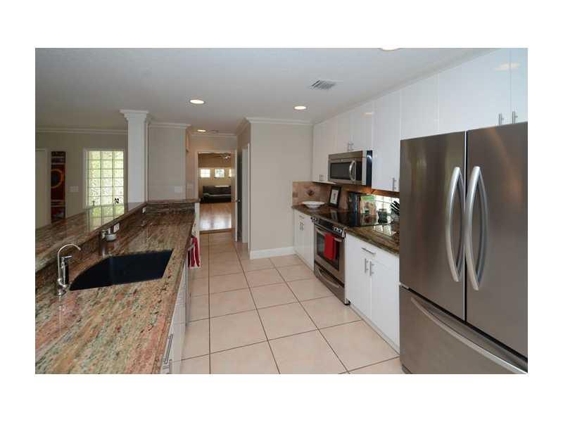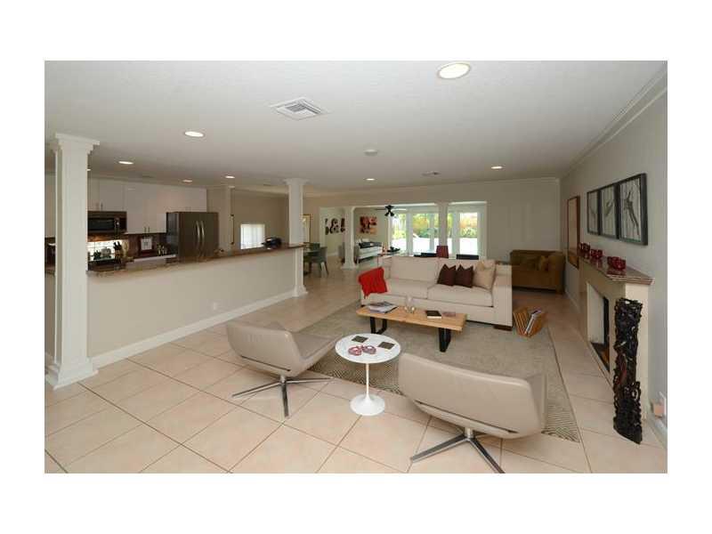 Contemporary 4BR/2.5BA offers a sought-after open floor plan with a modern, open kitchen, impact windows/doors, a fireplace and private, fenced yard with resort-style heated pool and brick terrace. Colorful tropical gardens surround the homes entry and le ad to a welcoming front porch. The quad-split bedroom design offers privacy and flexibility of use. Interior space is ideal for entertaining with public rooms flowing one to the next and opening onto the pool.