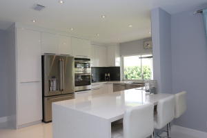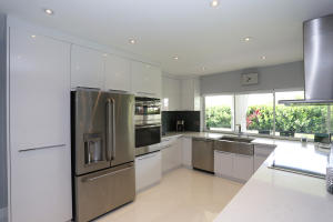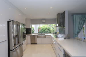 RENOVATED WITH A STUNNING CONTEMPORARY FLAIR, THIS 3 BEDROOM, 2 BATH RESIDENCE WILL NOT DISAPPOINT! ENTER INTO THE MAIN LIVING AREA, ADORNED WITH 24'' ALPINE WHITE, HIGH GLOSS PORCELAIN TILE LAID WITH RAZOR GROUT LINES, THEN APPRECIATE THE SPECTACULAR KITCHEN, WITH CUSTOM HIGH GLOSS WHITE CABINETRY, SUPERIOR GE TOP OF THE LINE APPLIANCES, INCLUDING WALL OVEN AND ADVENTIUM SPEED COOK OVEN, STAINLESS APRON SINK, AND FABULOUS COOKTOP AND HOOD, WHILE WHITE, EXTRA THICK QUARTZ COUNTERTOPS WITH WATERFALL EDGE COMPLETE THE LOOK..ALL BEDROOMS ARE LARGE, WITH NEW CHOCOLATE LAMINATE FLOORING, CUSTOM CLOSETS, AND CUSTOM WINDOW TREATMENTS...FRENCH DOORS OFF MASTER, 3RD BEDROOM, & LIVING ROOM BRING THE OUTDOORS IN, LEADING OUT TO A 400+ SF COVERED LOGGIA, PROVIDING ENDLESS ENTERTAINING OPTIONS...