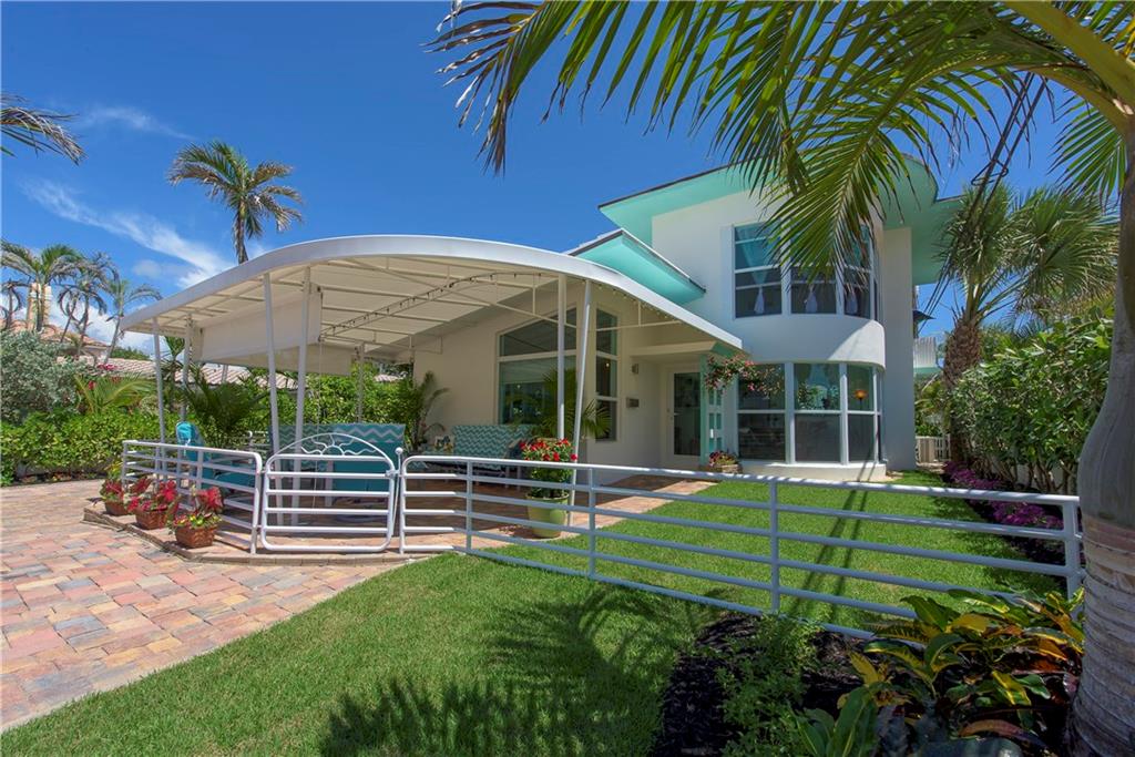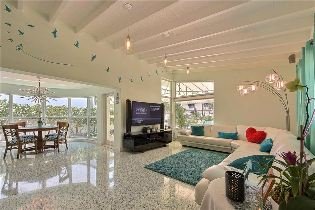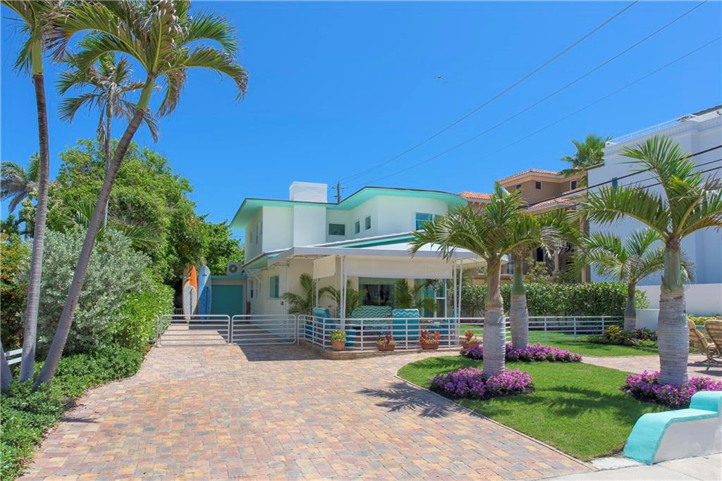 2ND HOME FROM OCEAN! THIS RESTORED ARCHITECTURAL GEM IS A TROPICAL SEASIDE PARADISE! CHIC MIAMI ART DECO MEETS BAUHAUS MODERN! BEAUTIFUL FRONT PATIOS FOR OCEAN VIEW & BREEZES. GLISTENING TERRAZZO FLOORS, VAULTED WOOD BEAM CEILING IN LIVING RM W/FPLACE, CURVED WALL IN DINING RM, KETCHUM TILE ON STAIRS, MASTER W/CURVED WALL & VIEWS OF THE OCEAN! UPSTAIRS OPEN BALCONY OVERLOOKS TROPICAL REAR YARD, HIP RETRO KITCHEN W/UPDATED NORTHSTAR APPLIANCES. IMPACT WINDOWS & DOORS, 1 CAR GARAGE! MODERN YET OF THE ERA!