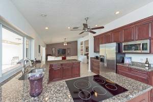 Spectacular lake views, beautiful landscaping & completely updated home. Spacious main living area and large bedrooms. Master bedroom, master en-suite & main bath all re-designed. Master bath has seamless glass shower with 24'' marble from floor to ceiling plus whirlpool tub. Master and main baths have beautiful 24'' marble floors & double sinks, marble/wood vanities. Main living areas have neutral 18'' diagonal tile throughout. Kitchen remodeled with custom cherry cabinets, granite counter tops and stainless steel appliances. all windows and sliders upgraded with impact glass. Expansive 3 panel slider opens living area to large lanai & pool area with roman columns, new fencing, coping and pavers. New 5 ton a/c & new sprinkler system with commercial pump-cont'd in additional remark