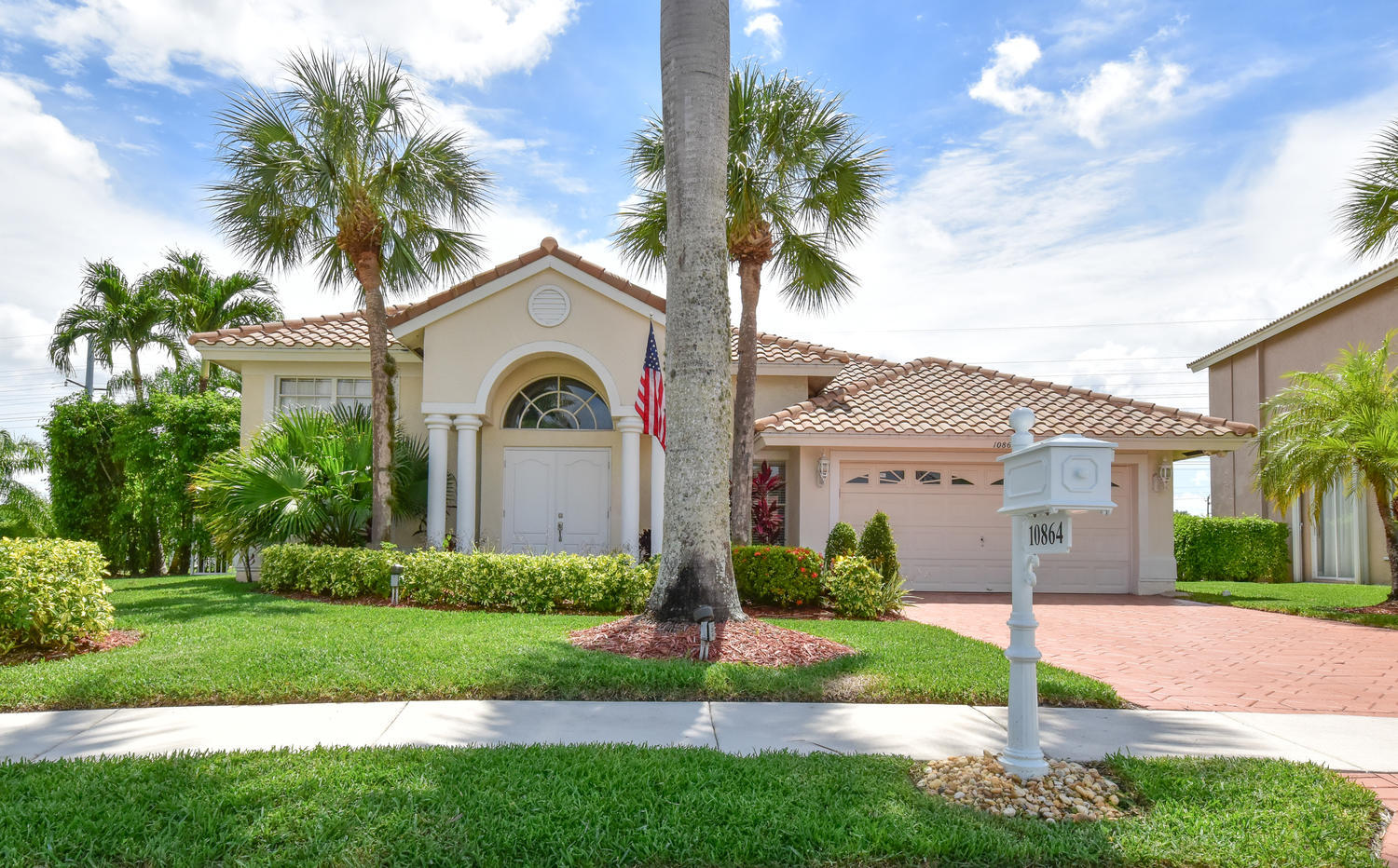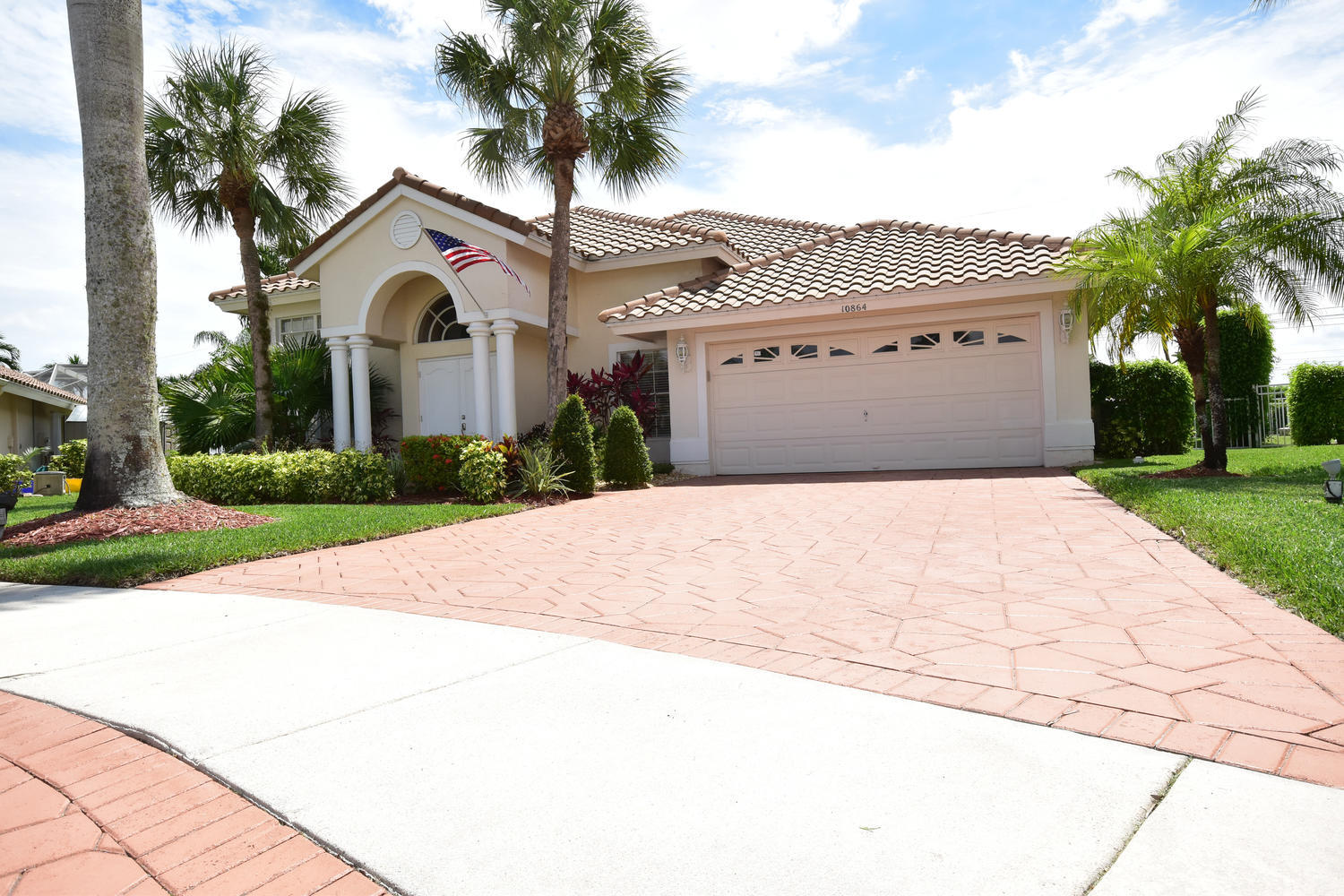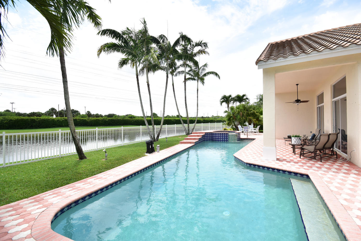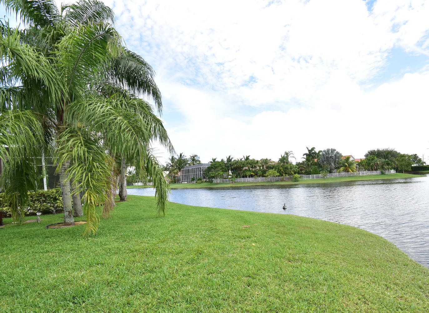 PRISTINE-Updated*Lakefront*Gorgeous resort-style heated large lap pool+10-person spa*Backyard:Private/secluded +tall dense hedges/fenced /spacious private patios+pavers/*Open-concept kitchen-family room-large breakfast bar*Volume ceilings most rooms*Roof replaced*18"diagonal tile:foyer,dining room,living room,kitchen+family room*Wood-look floors:bedrooms*Spacious kitchen:white panel cabinets,granite,stainless appliances*Master Suite:two walk-ins+sliders-view tropical paradise*Master bath:dual sinks* floor+shower tile replaced*roman tub*granite counters*Cabana Bath:floor+shower tile replaced+granite counters+replaced vanity*Guard gated clubhouse community:tennis/fitness/resort pool*Nearby:Shopping/entertainment/eateries/excellent schools/golf courses,water park,ball fields,tennis,handball.